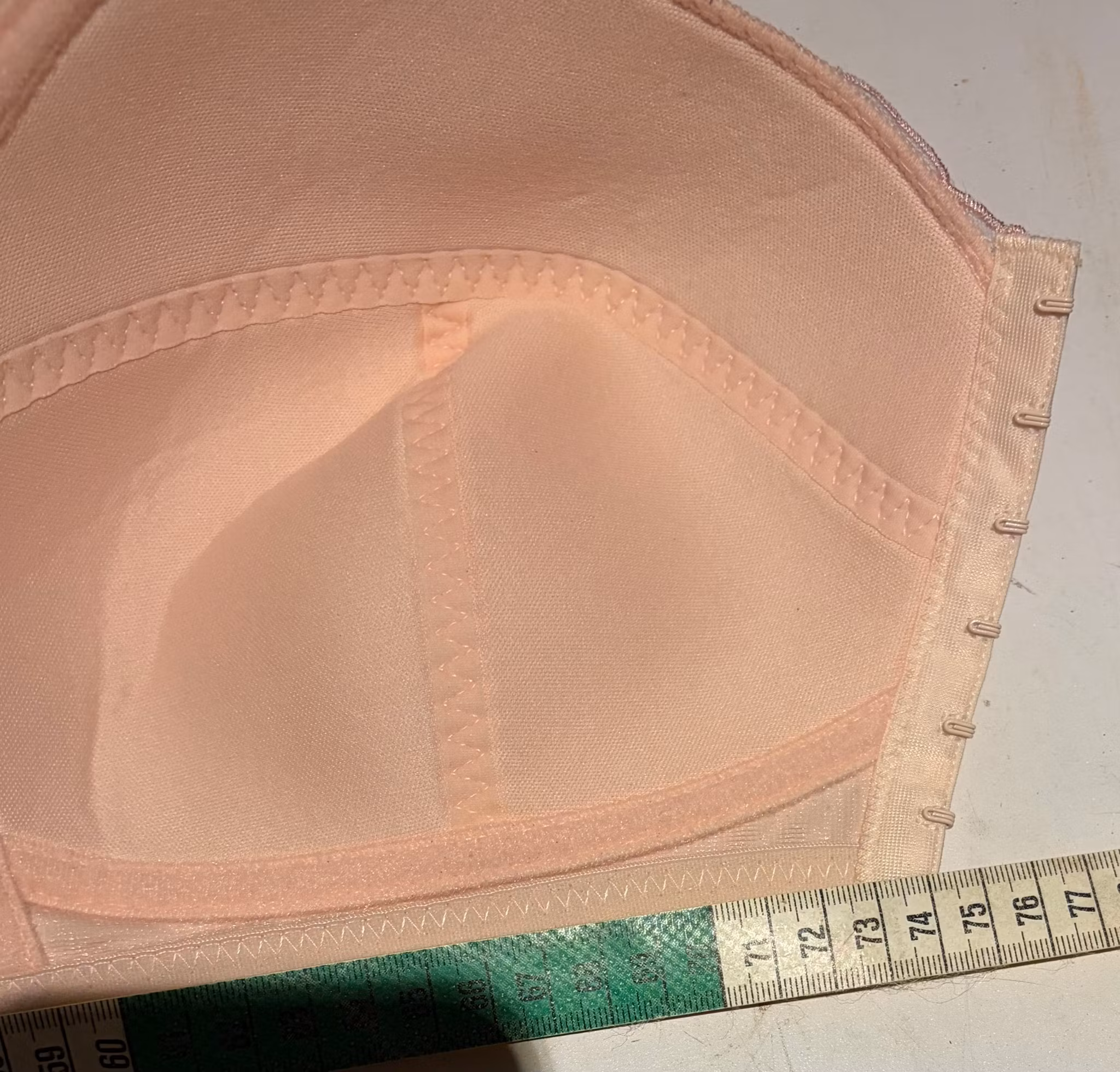 - Størrelse: Mærket siger 85F, men svarer pga. målene nærmere til en 75-80 i omkreds.