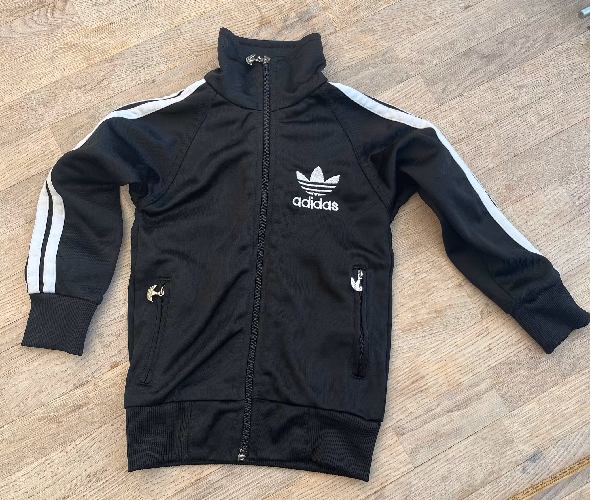 sort adidas træningsjakke til børn, sandsynligvis en Tiro 24 træningsjakke. Trøje.