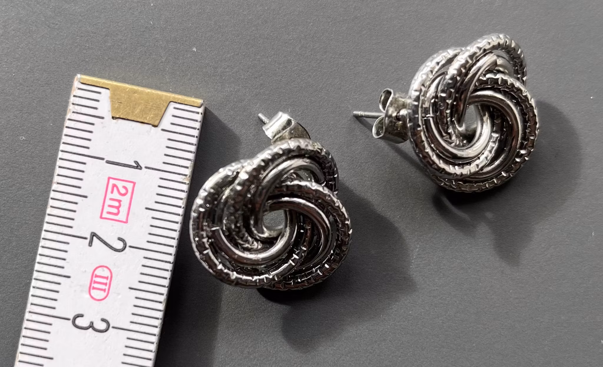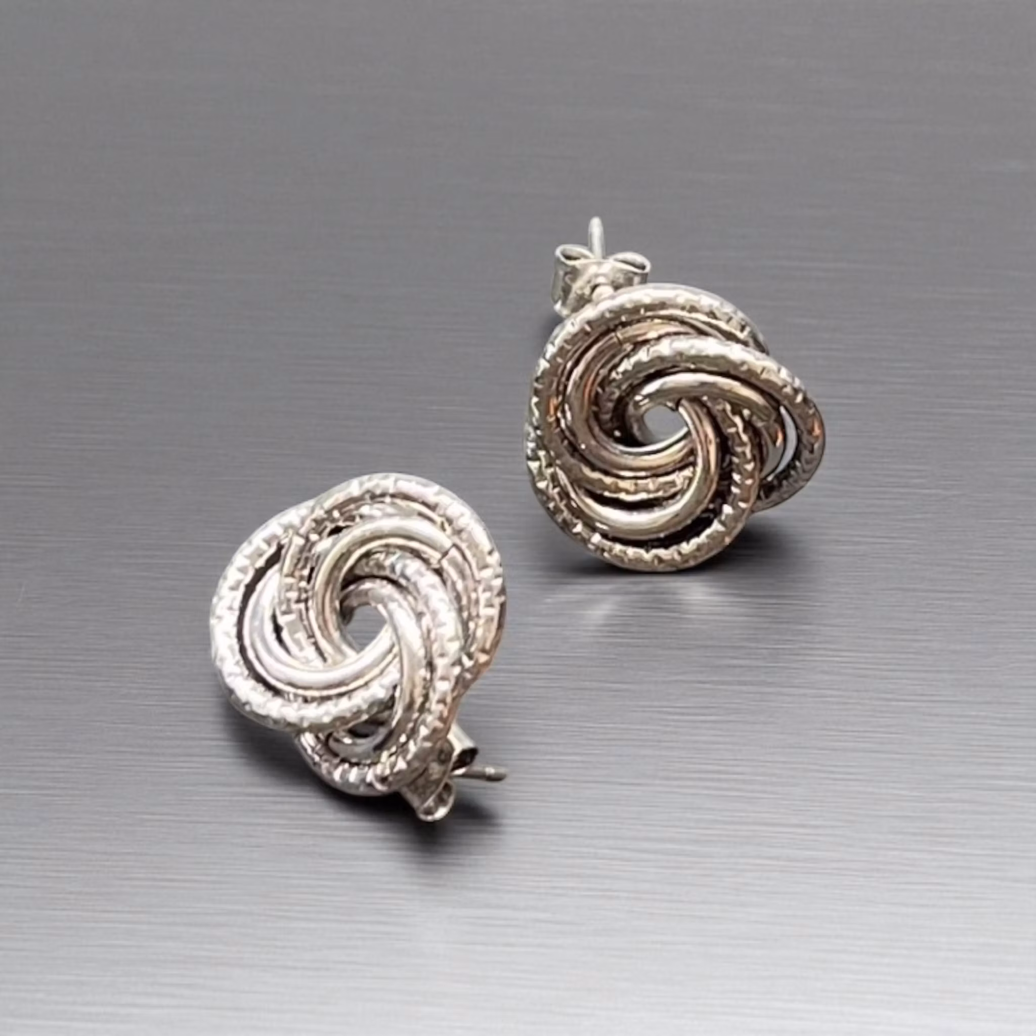 Øreringene har et unikt og detaljeret knudedesign, der skaber en illusion af flettede bånd, hvilket giver dem et organisk og kunstnerisk udtryk.