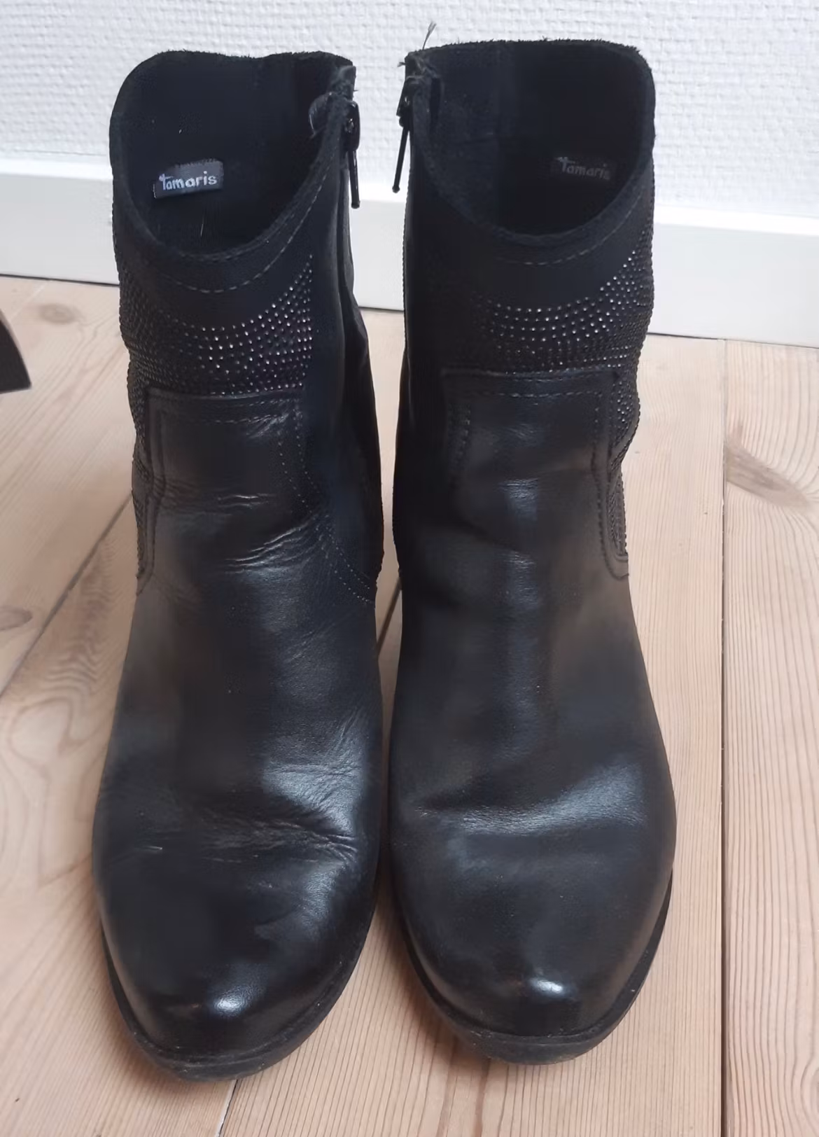 Tamaris - str. 40 25,- Sorte Sko med hæl / støvler På lager Tilføj til kurv Lagersaldo: 1 Del Information Anmeldelser Sorte Sko med hæl / støvler