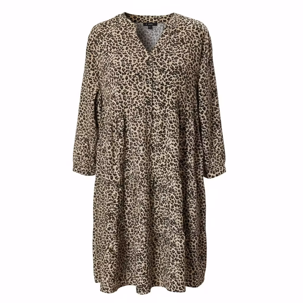 - Model: En langærmet hverdagskjole i et såkaldt "tiered" design . Det betyder, at underdelen er delt op i vandrette baner (etager) med små rynkeeffekter, som giver kjolen masser af vidde og et flot fald.