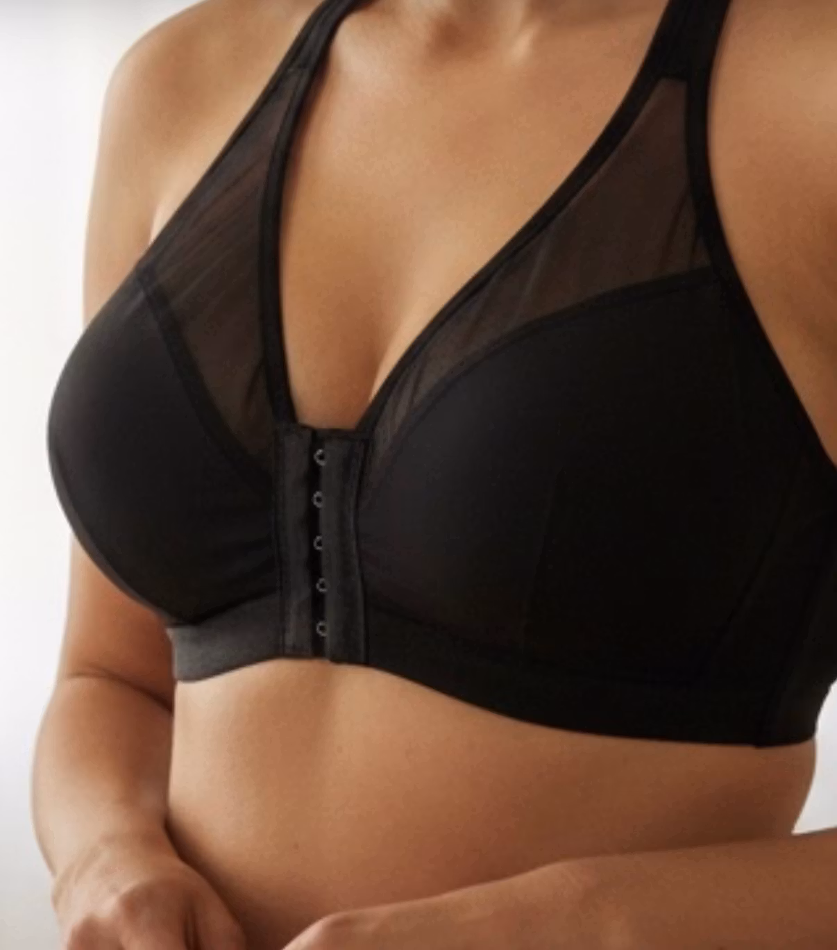 Design: Bh'en har en praktisk frontlukning med mulige, hvilket gør den velegnet til amning eller som en behagelig hverdagsløsning. Den har brede stropper og en racerback-lignende stil med mesh-detaljer ved halsudskæringen.