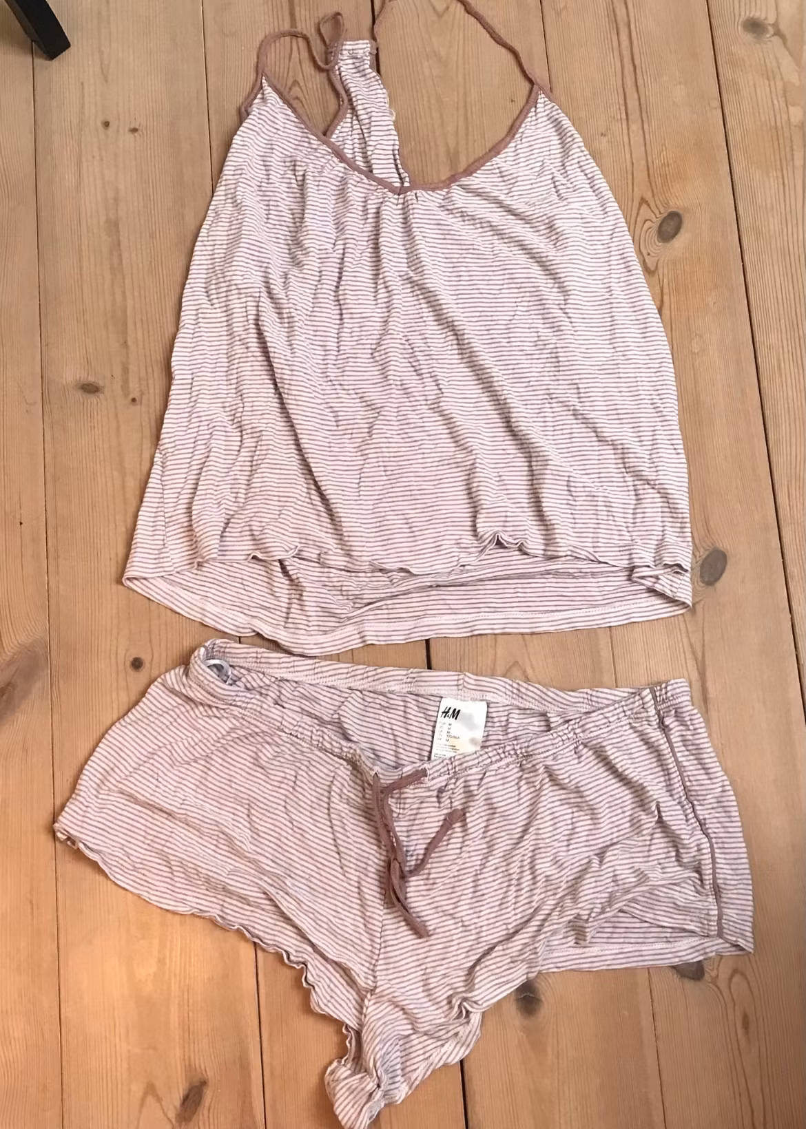 H&M - str. M 25,- Nat sæt / strop trøje og shorts / hygge sæt / undertrøje med shorts eller top med shorts til. På lager Tilføj til kurv Lagersaldo: 1 Del Information Anmeldelser Nat sæt / strop trøje og shorts / hygge sæt / undertrøje med shorts eller top med shorts til.