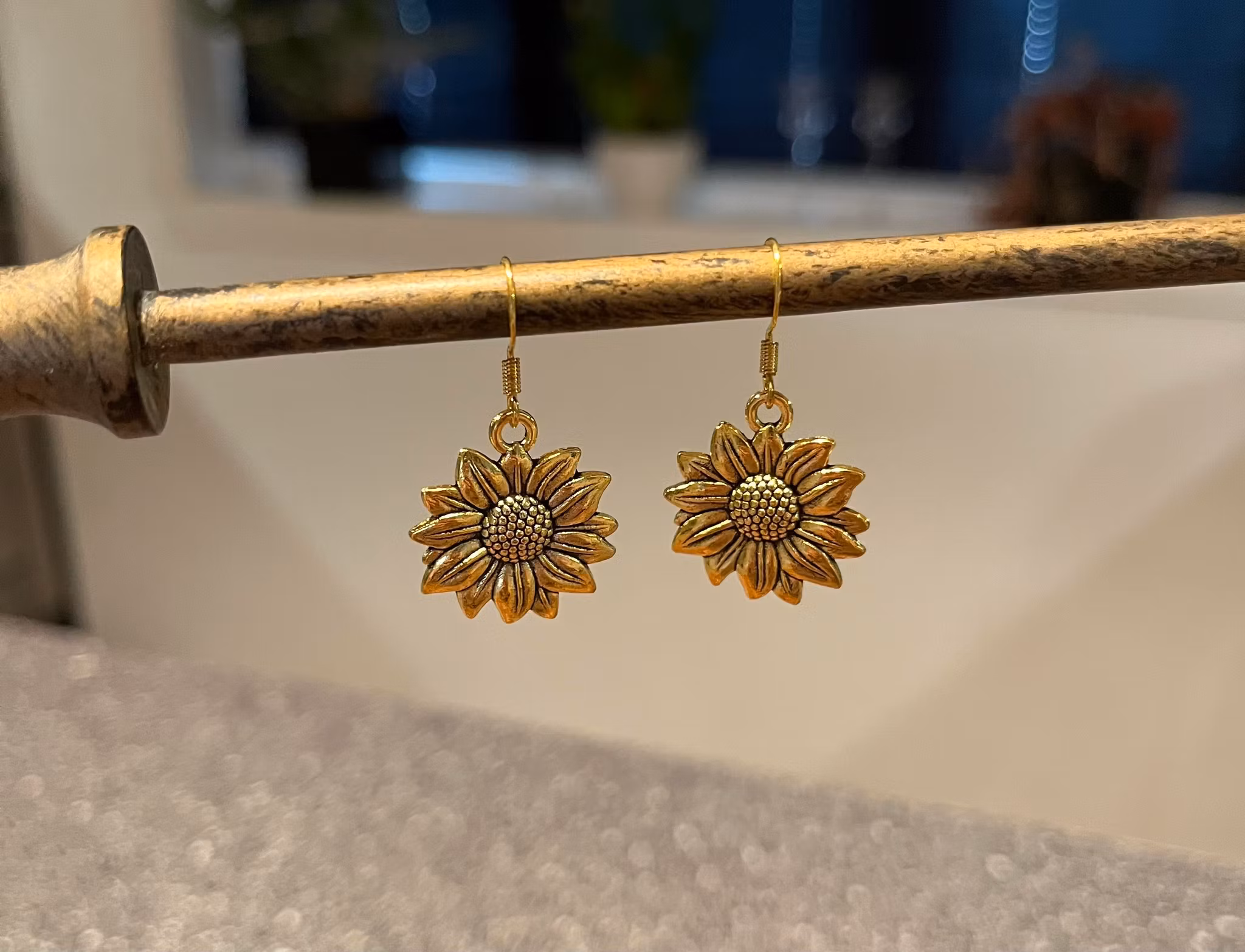 Sunflower - 3 cm 25,- Øreringe med gyldne solsikke i materialet zinklegering. Ørekrog er forgyldt Sterling silver / sølv. På lager Tilføj til kurv Lagersaldo: 1 Del Information Anmeldelser Øreringe med gyldne solsikke i materialet zinklegering. Ørekrog er forgyldt Sterling silver / sølv.
