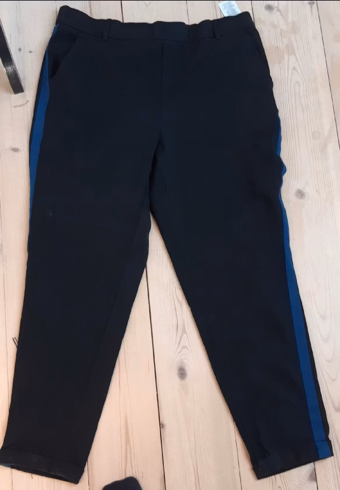 Vero Moda - str. XL 49,- Sorte bukser med blå stribe langs siden. På lager Tilføj til kurv Lagersaldo: 1 Del Information Anmeldelser Sorte bukser med blå stribe langs siden.