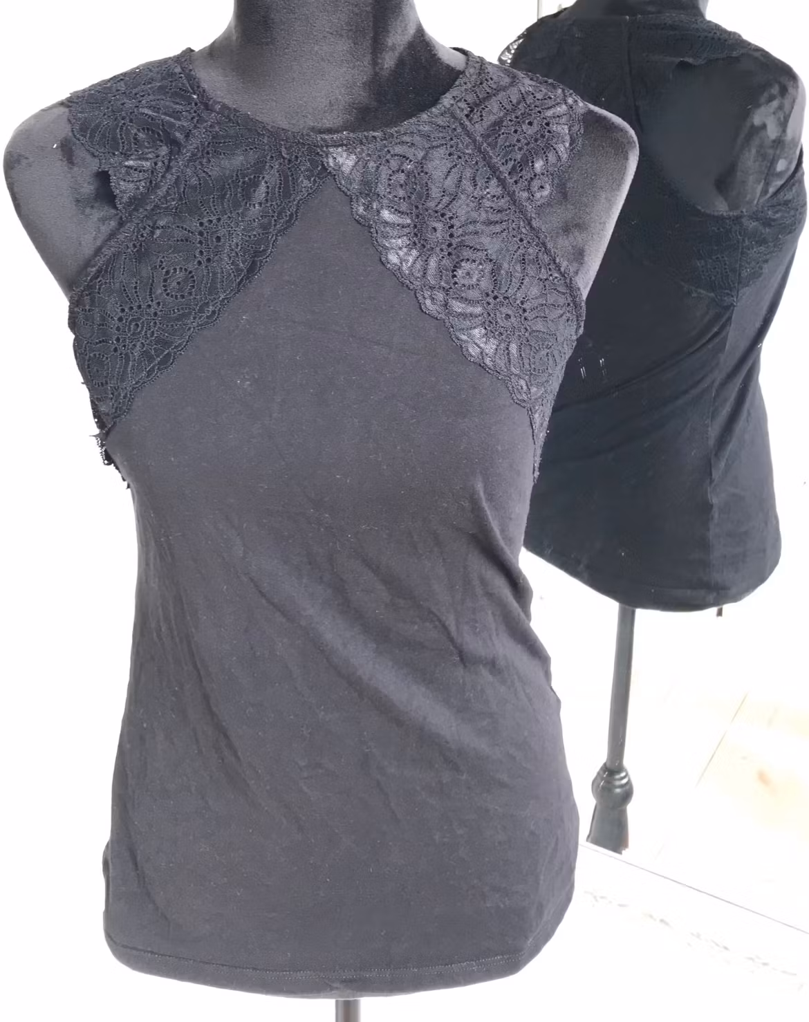 H&M - str. M 25,- Sort top / bluse / trøje uden ærmer med blonder På lager Tilføj til kurv Lagersaldo: 1 Del Information Anmeldelser Sort top / bluse / trøje uden ærmer med blonder
