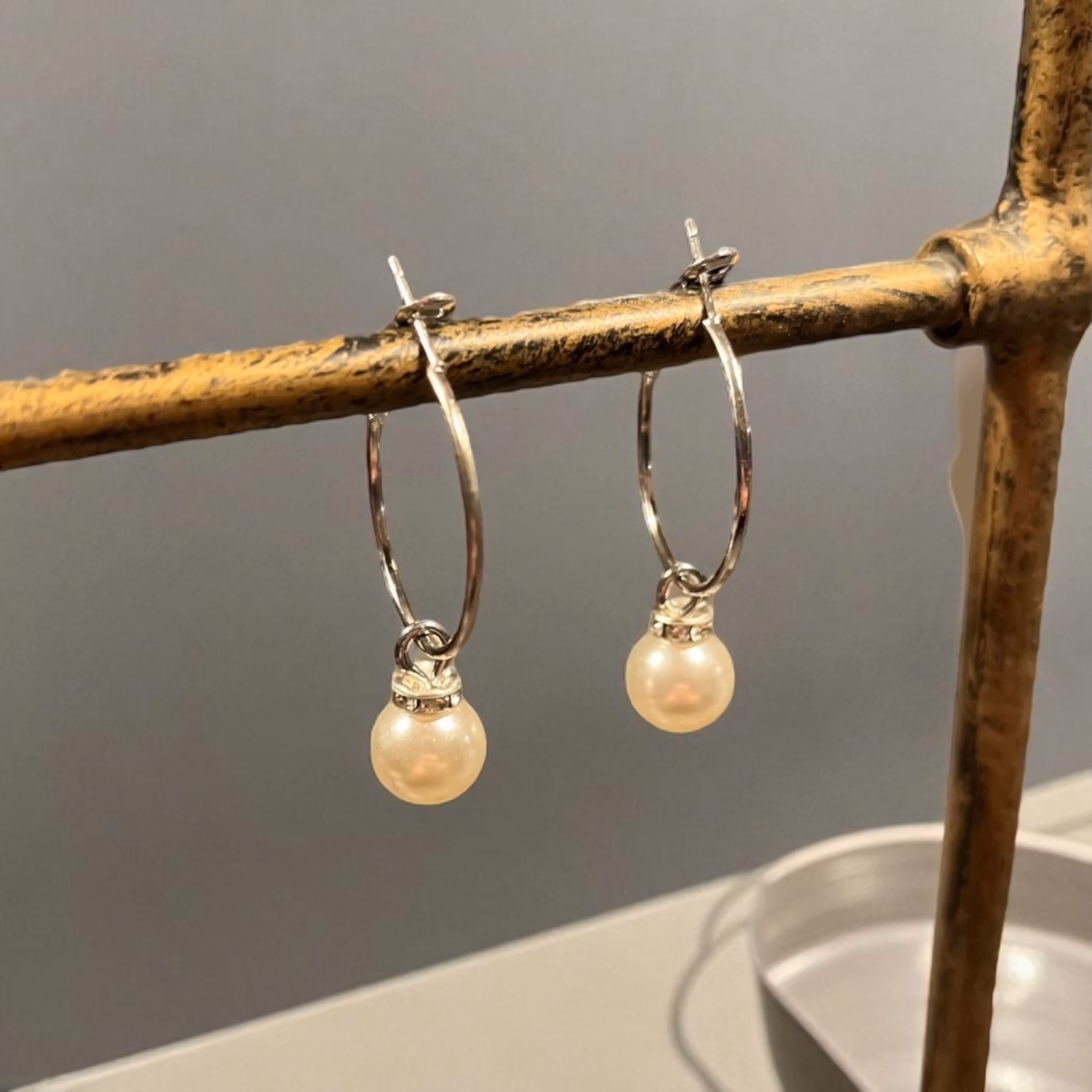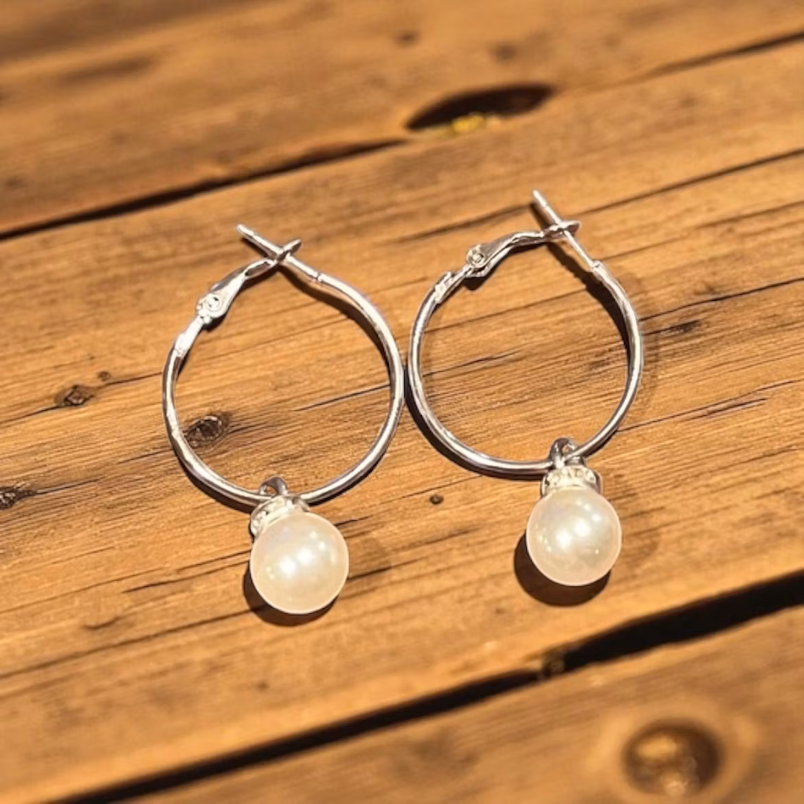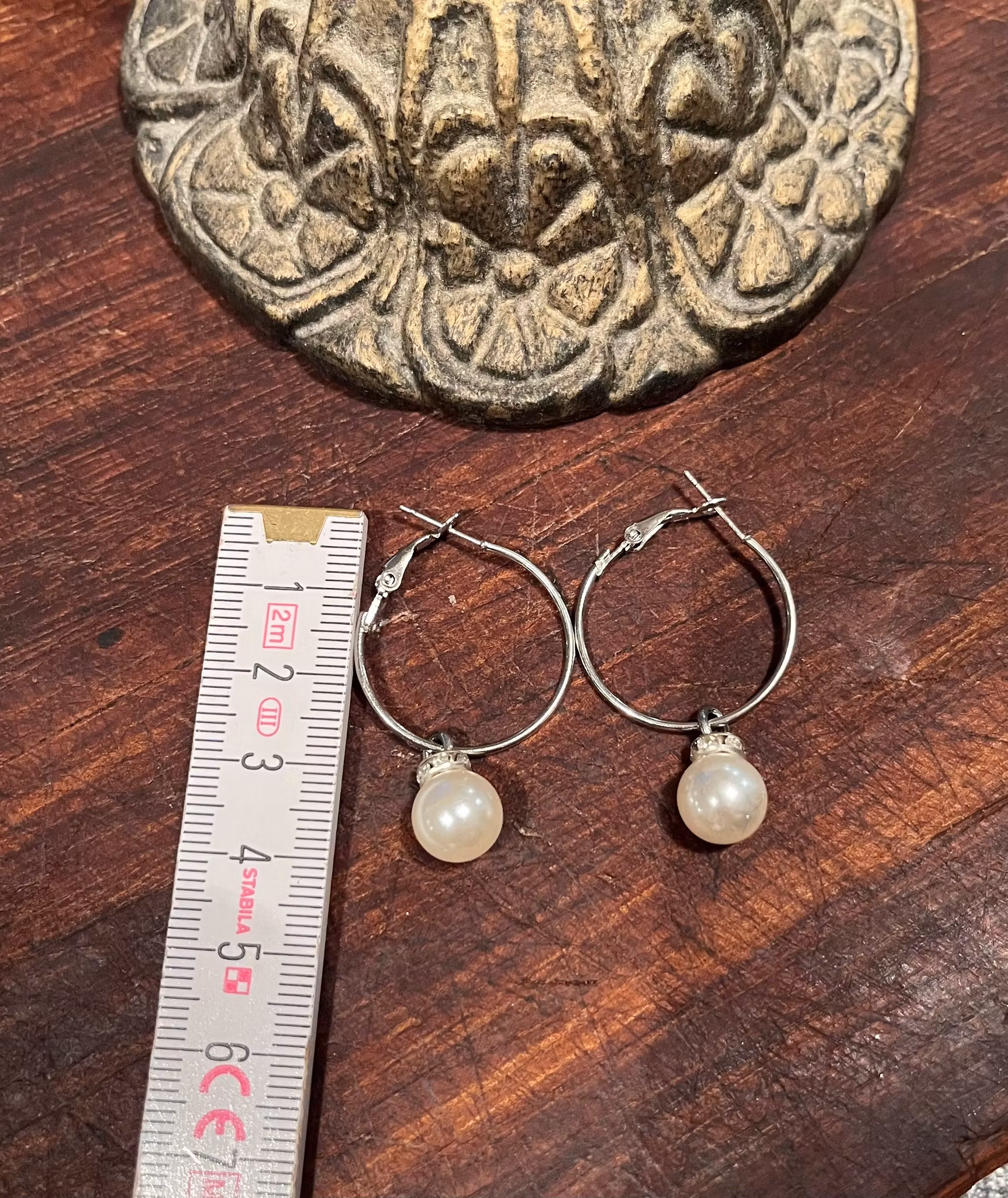 Tilføj et strejf af klassisk elegance til dit look med disse smukke øreringe. De sølvfarvede creoler fremhæver en skinnende, perlemorsagtig perle, der fanger lyset og tilføjer et sofistikeret udtryk. Perfekte til både hverdagsbrug og festlige lejligheder. Disse øreringe er et tidløst smykke, der komplementerer enhver stil.