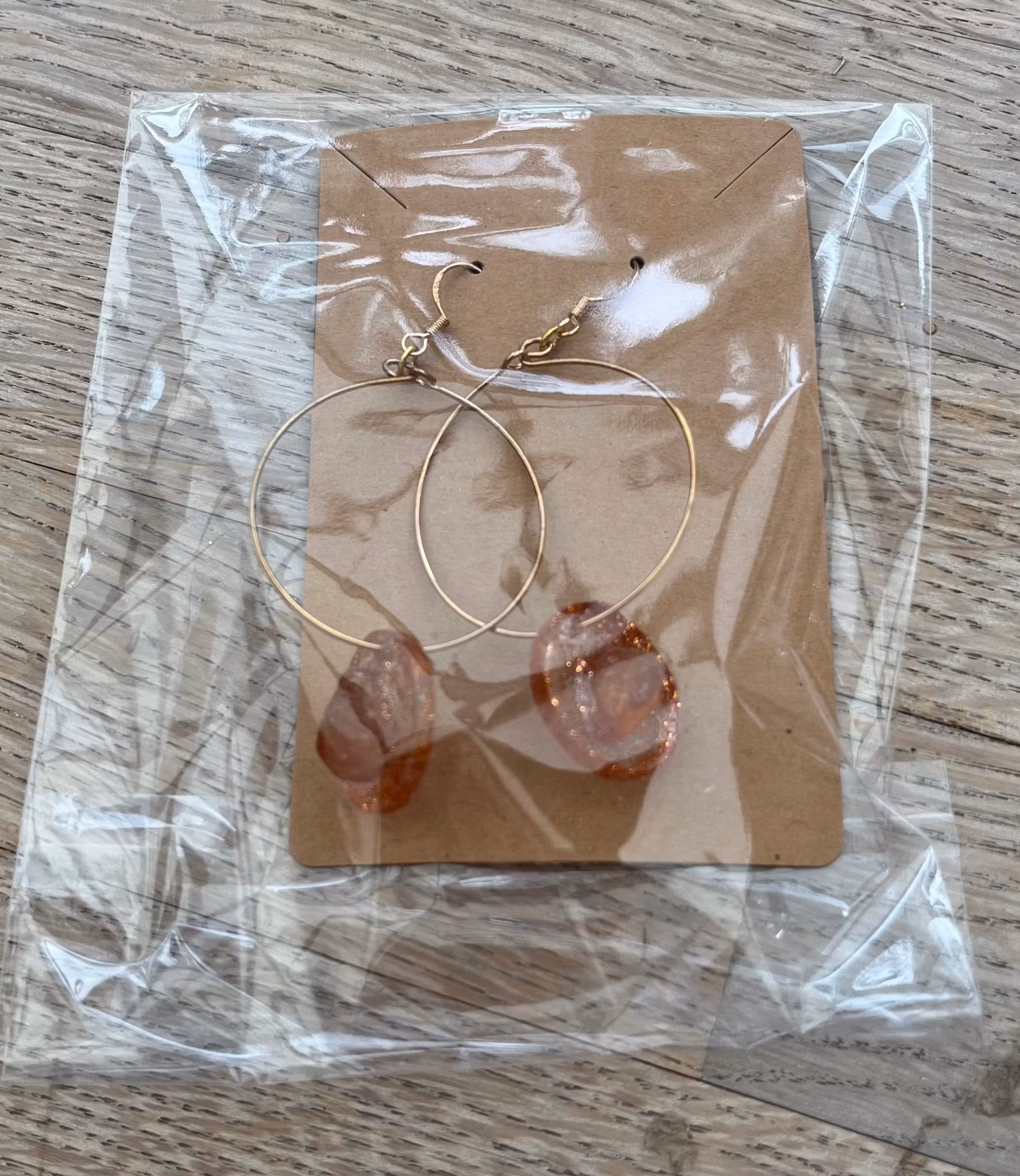 Amberring 49,- Øreringe lavet med epoxyharpiks og et ravstykke. På lager Tilføj til kurv Lagersaldo: 1 Del Information Anmeldelser Øreringe lavet med epoxyharpiks og et ravstykke.