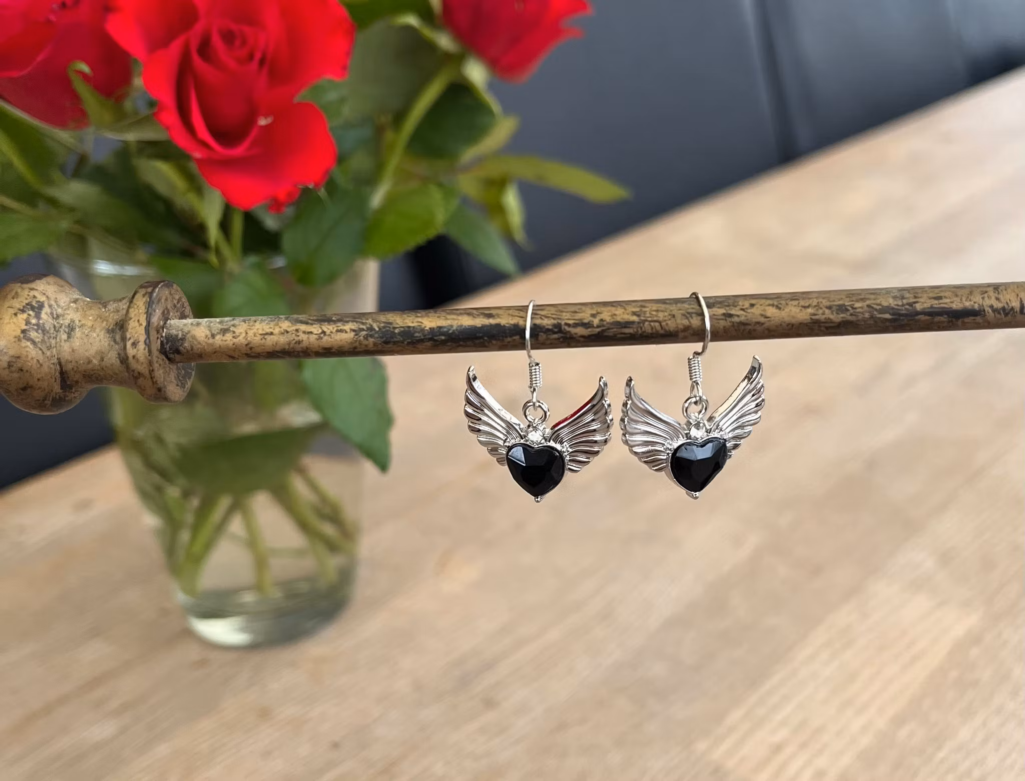 Øreringe - 3 cm 49,- Øreringe med krog af Sterling sølv - sort hjerte med vinger / smykker På lager Tilføj til kurv Lagersaldo: 1 Del Information Anmeldelser Øreringe med krog af Sterling sølv - sort hjerte med vinger / smykker