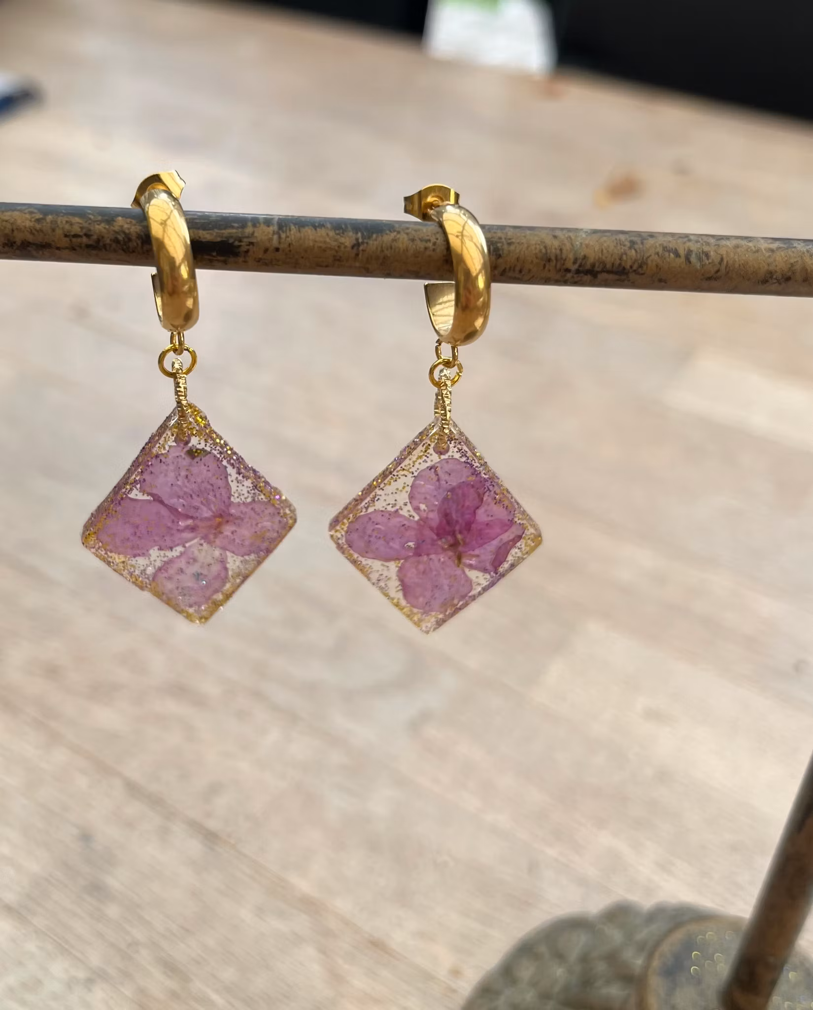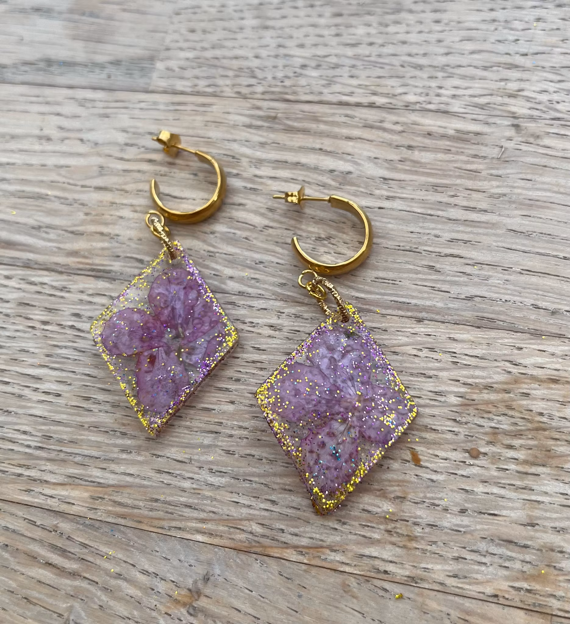 Lillablomst 49,- Øreringe med vedhæng lavet af epoxyharpiks og en lilla blomst fra haven. På lager Tilføj til kurv Lagersaldo: 1 Del Information Anmeldelser Øreringe med vedhæng lavet af epoxyharpiks og en lilla blomst fra haven.