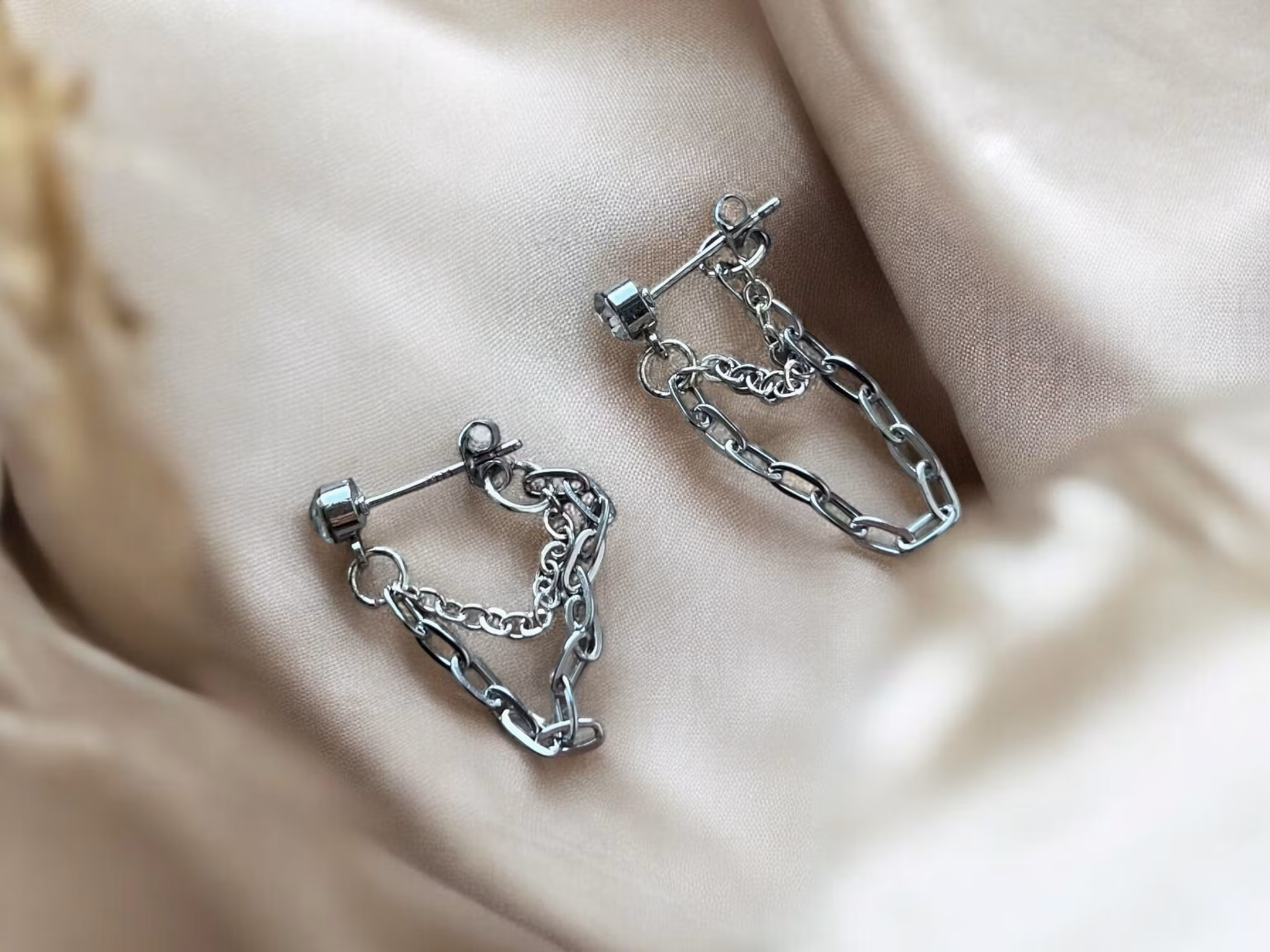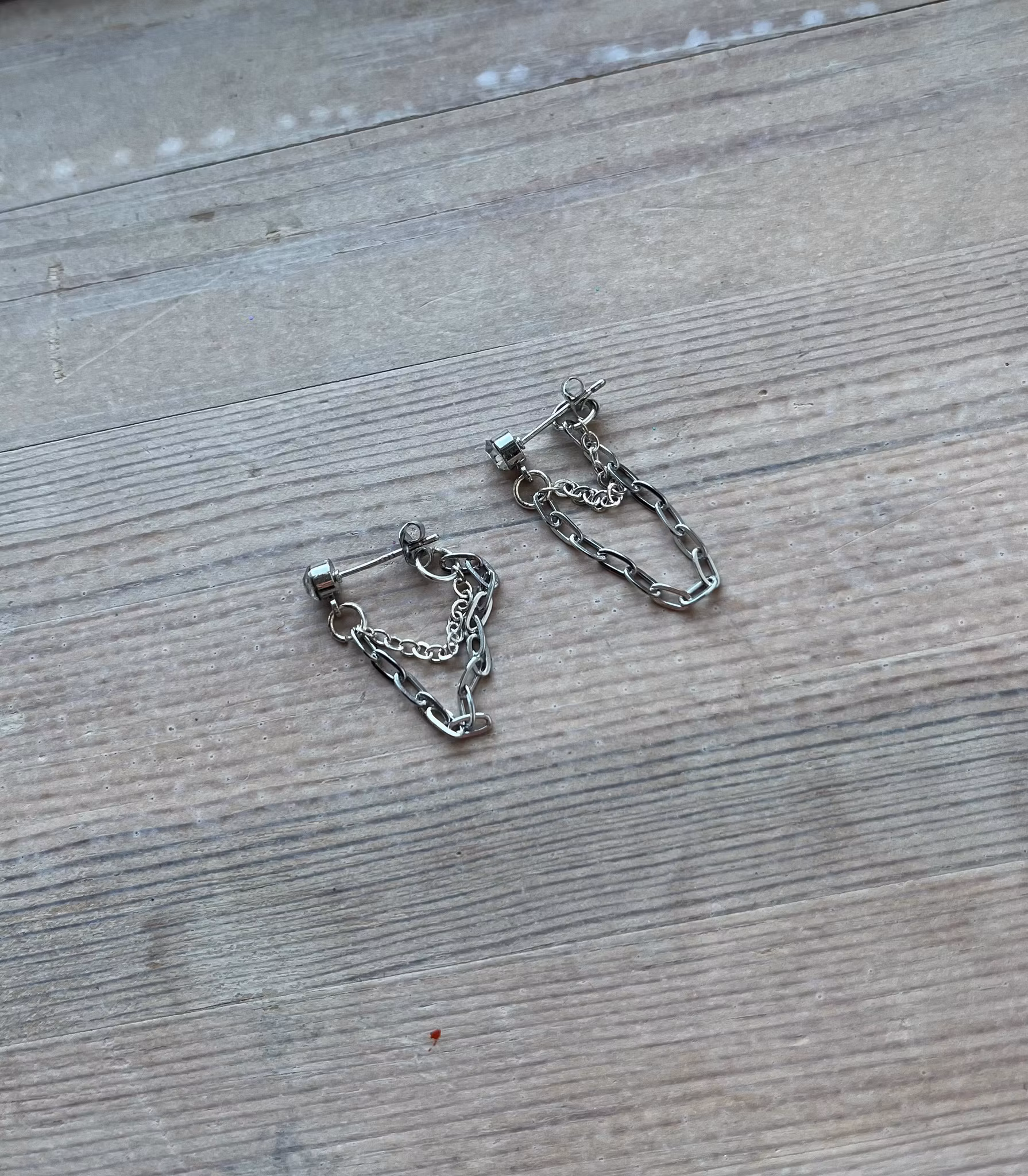 Øreringe 75,- Håndlavede øreringe med kæde i sølv farve.Materiale: Jern På lager Tilføj til kurv Lagersaldo: 1 Del Information Anmeldelser Håndlavede øreringe med kæde i sølv farve.Materiale: Jern