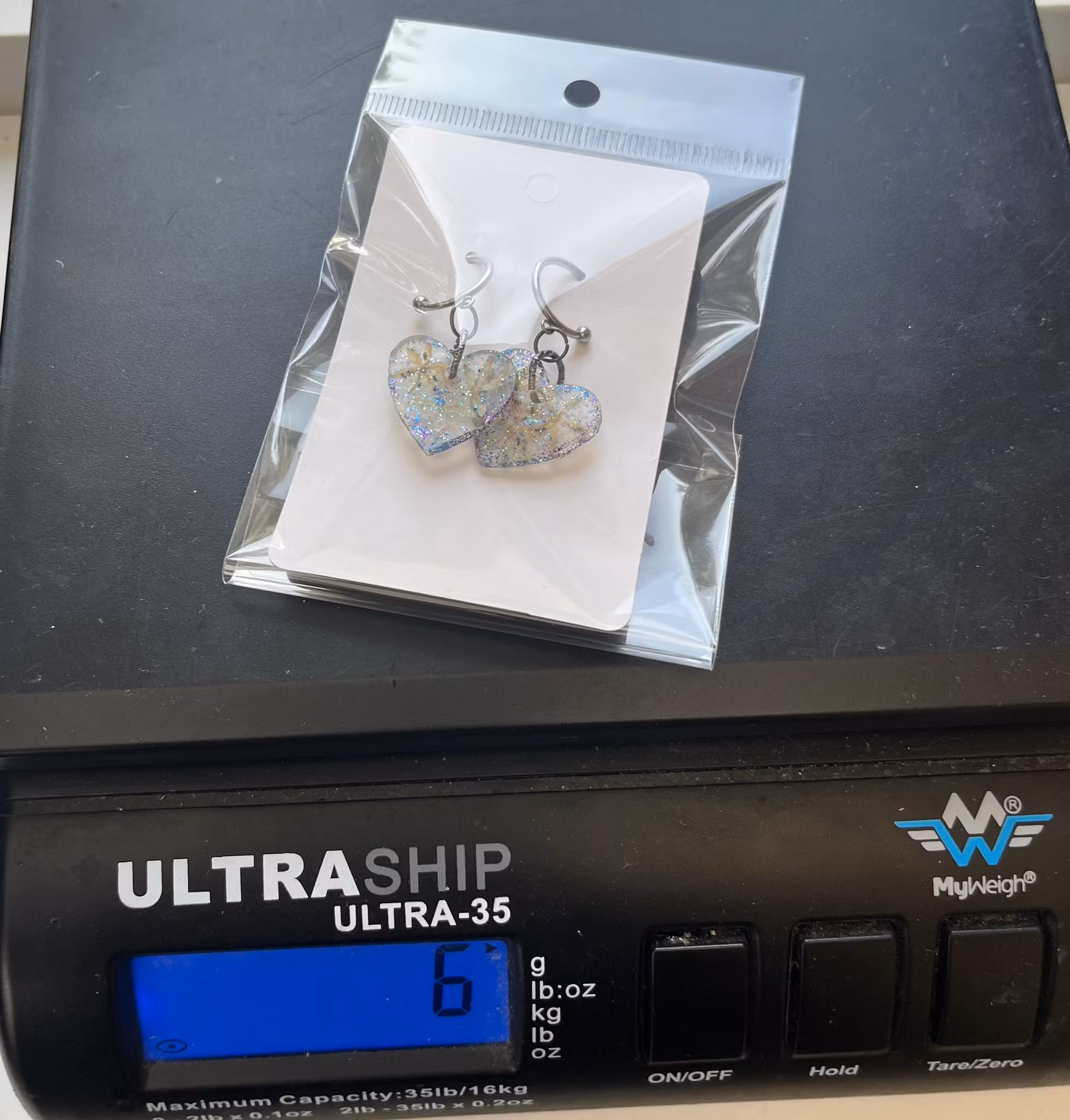 Hjerteøreringe med glitrende harpiks og unikke detaljer
