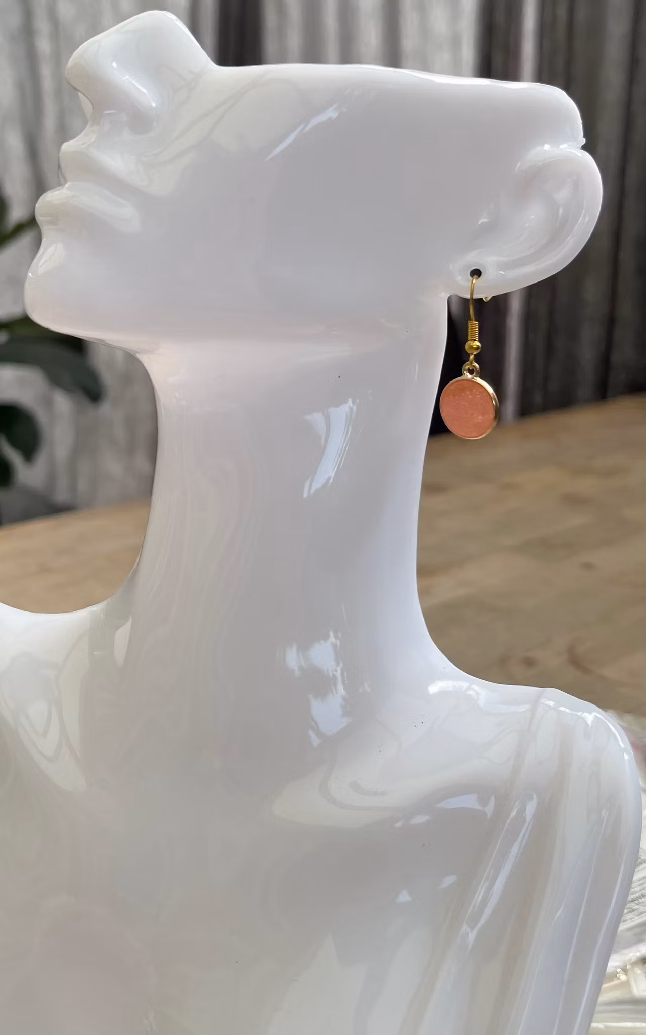 Disse charmerende "Roséglimt" øreringe tilføjer et strejf af subtil elegance til ethvert outfit. Med deres skinnende rosafarvede resin-vedhæng, der fanger lyset med et delikat glimt, er de perfekte til både hverdagsbrug og særlige lejligheder. Den klassiske runde form og de guldfarvede kroge sikrer en tidløs og feminin stil. Letvægtsdesignet gør dem behagelige at have på hele dagen.