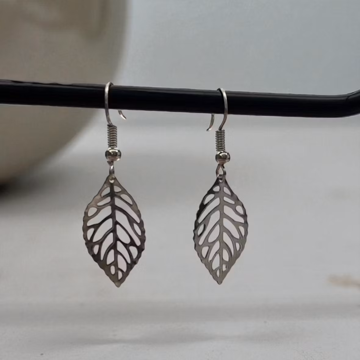 Tilføj et strejf af naturens skønhed til dit look med disse smukke bladformede øreringe. Disse lette og elegante øreringe er designet til at give et sofistikeret og feminint udtryk, perfekt til både hverdag og festlige lejligheder.
