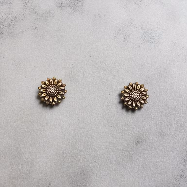 Disse charmerende ørestikker er designet som miniature solblomster med fine detaljer i metallet. De er ideelle til hverdagsbrug eller som en sød gave til en, der elsker blomster og unikke smykker. Deres kompakte størrelse gør dem behagelige at have på hele dagen.