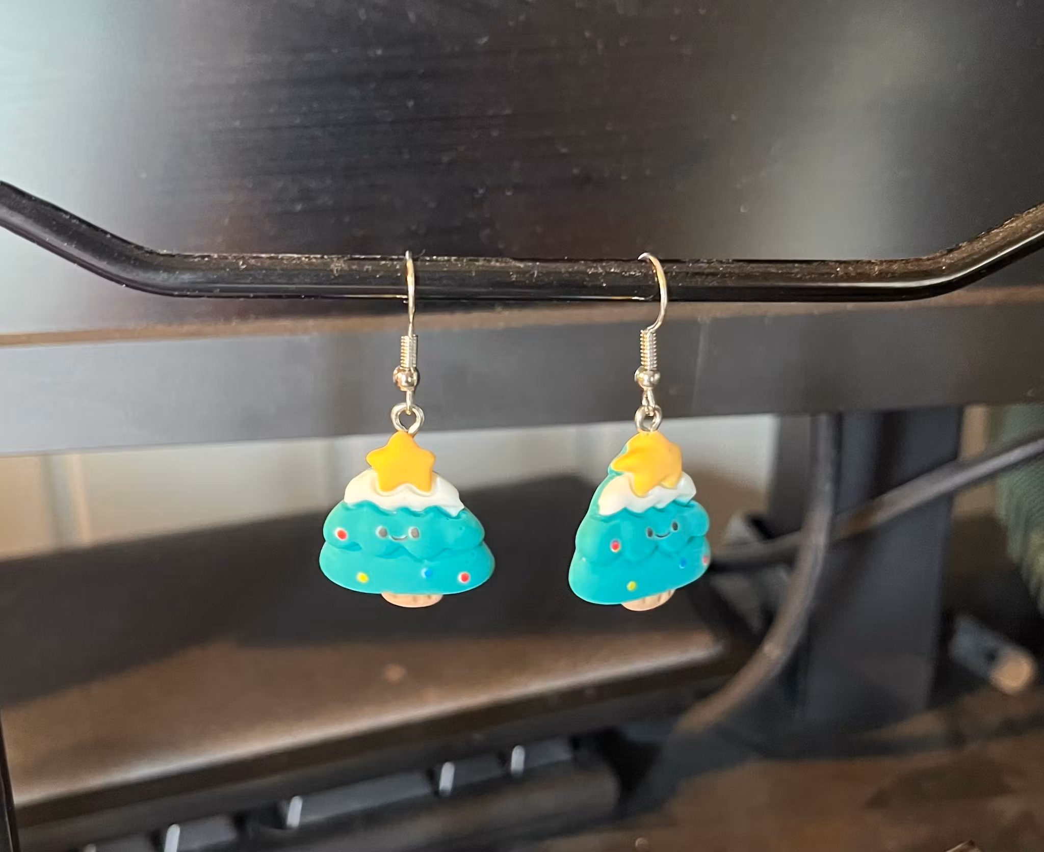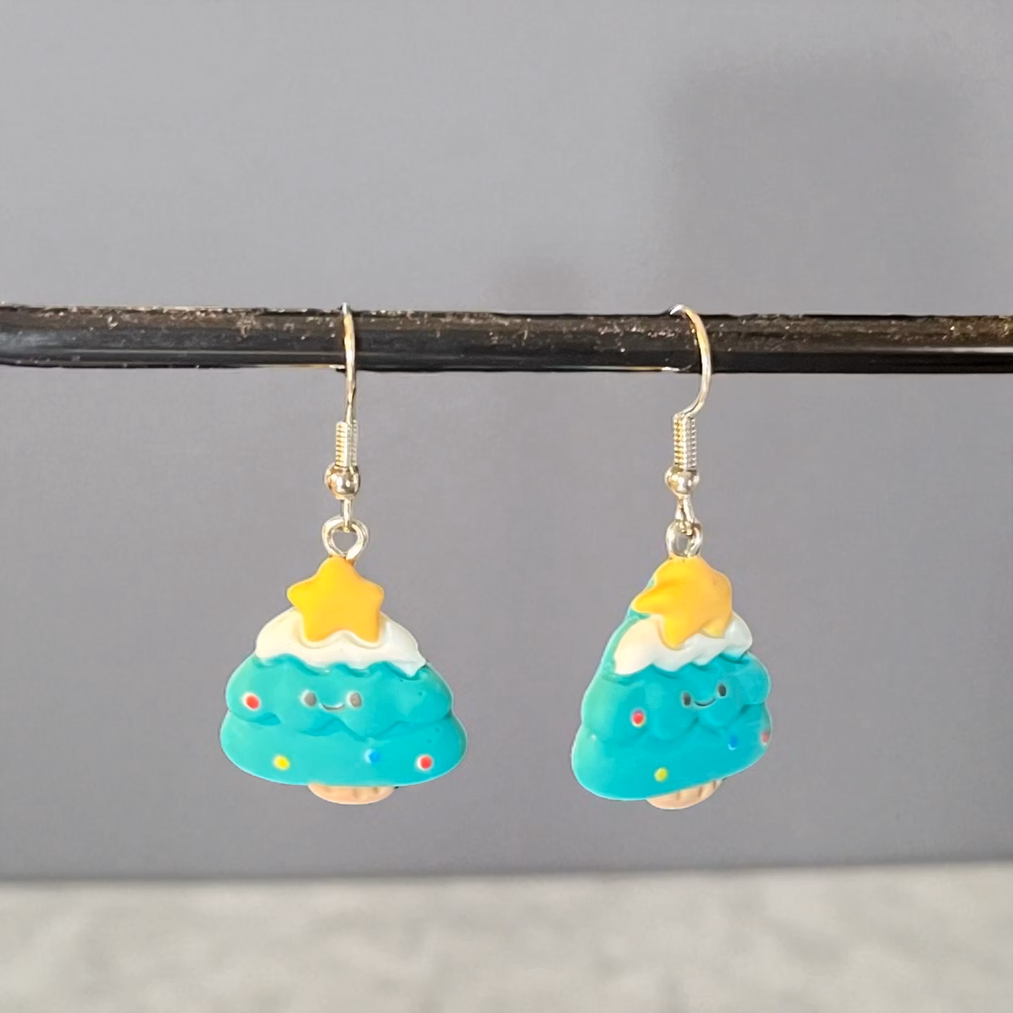 Disse charmerende øreringe er formet som søde juletræer med et venligt smil og en gul stjerne på toppen. De er perfekte til at sprede juleglæde og tilføje et festligt touch til dit outfit.