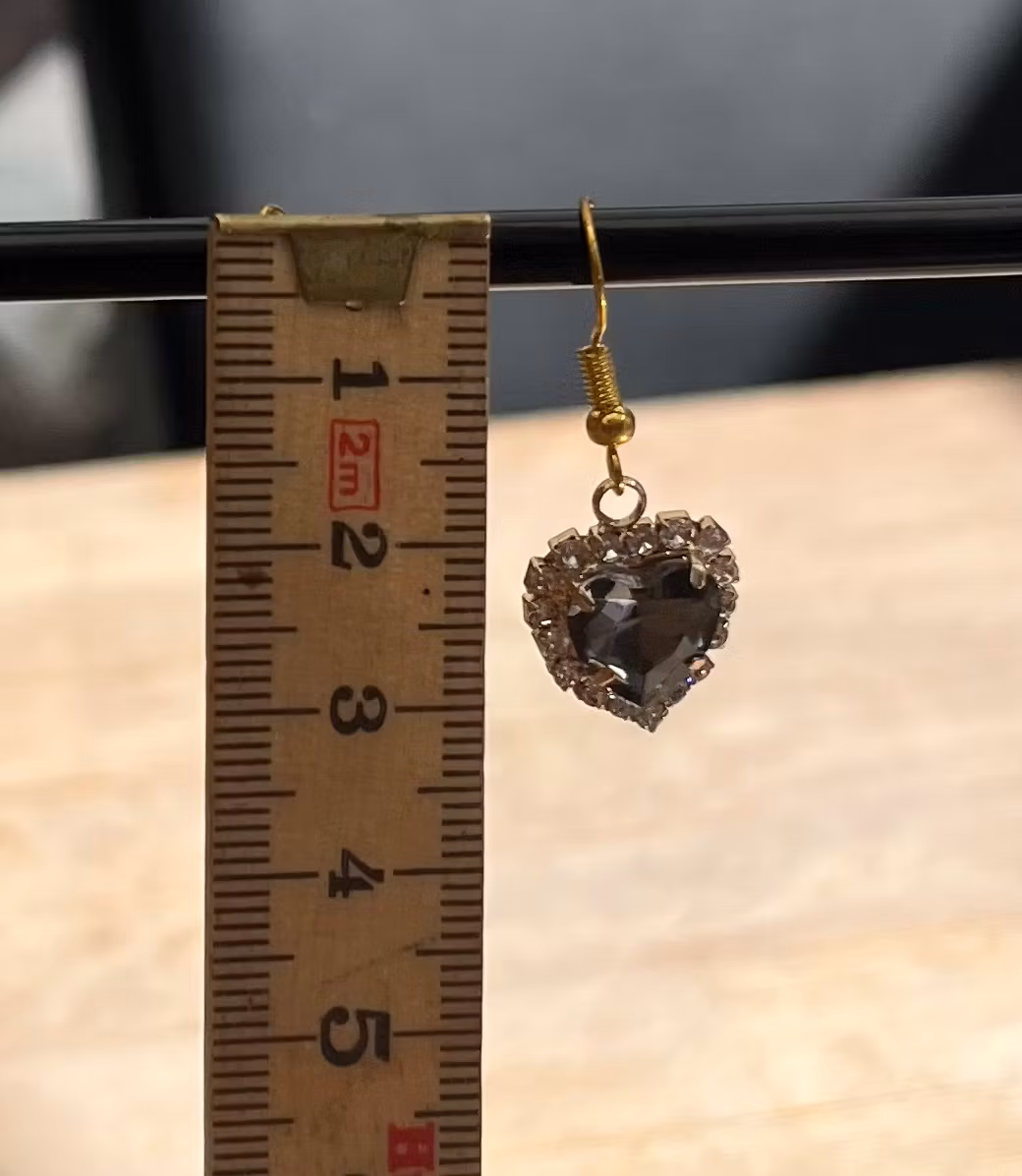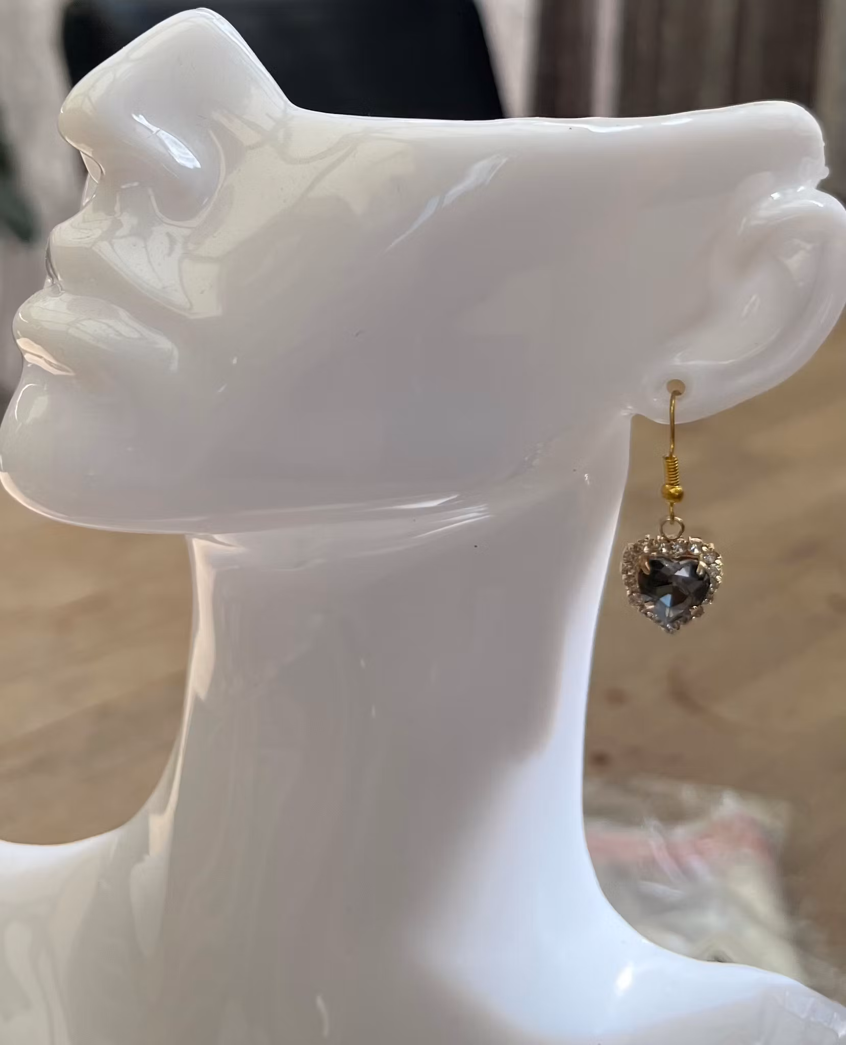 Disse smukke øreringe har et charmerende hjerteformet design med skinnende rhinsten, der fanger lyset og tilføjer et strejf af glamour. De er perfekte til at fuldende ethvert outfit, fra hverdagsbrug til særlige lejligheder.
