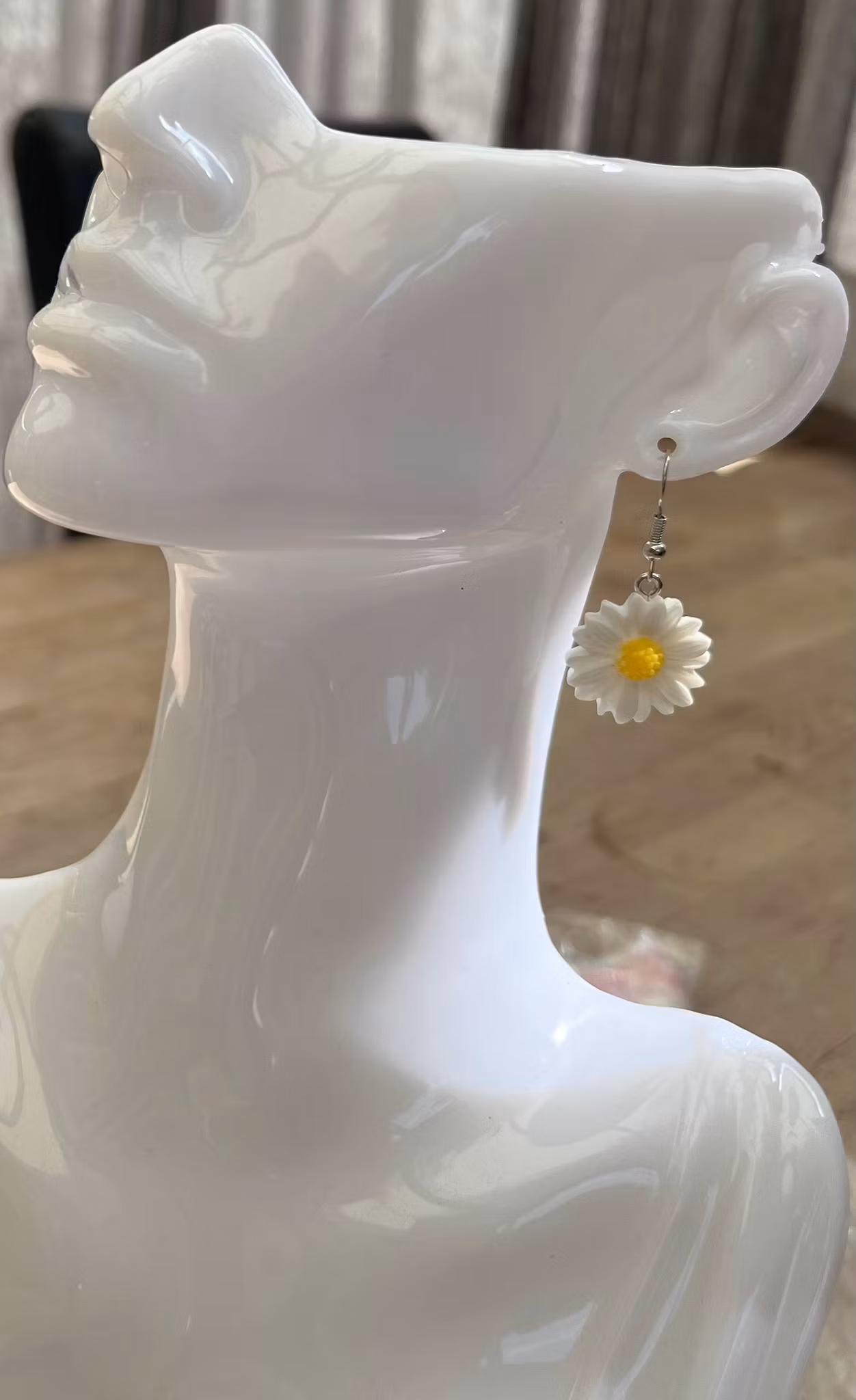 - Størrelse: Øreringene er ca. 4 cm i længden, og margueritblomsterne har en diameter på over 2 cm.