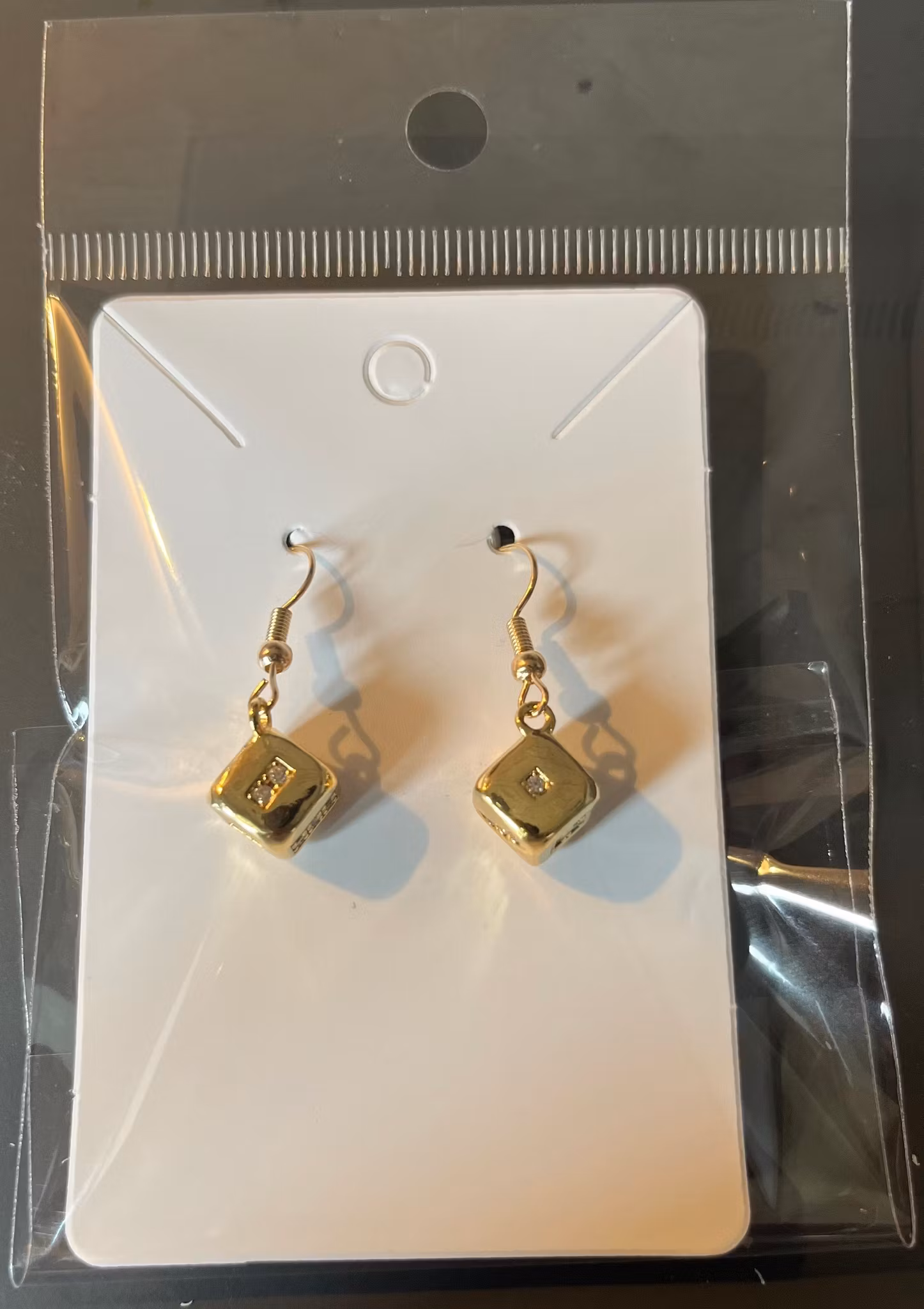 Materiale: Øreringene er fremstillet af et holdbart, guldfarvet kobber metal, der sikrer langvarig skønhed og glans. De skinnende sten, der pryder terningerne, er sandsynligvis kubisk zirkonia eller lignende syntetiske krystaller, der giver en brilliant glans, der minder om diamanter.