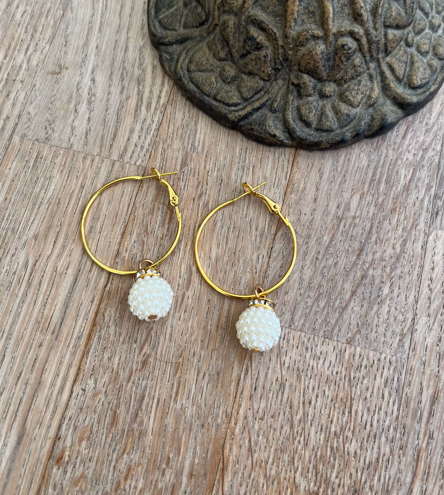 Øreringe - 4 cm 49,- Øreringe af guldbelagt rustfrit stål - hvide plast perler / smykker På lager Tilføj til kurv Lagersaldo: 1 Del Information Anmeldelser Øreringe af guldbelagt rustfrit stål - hvide plast perler / smykker