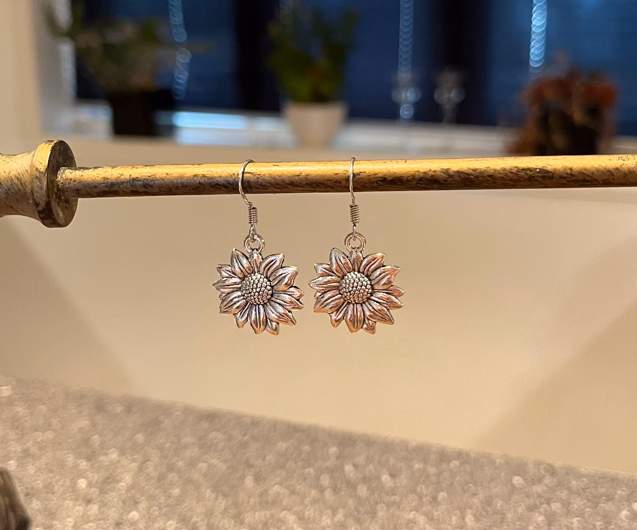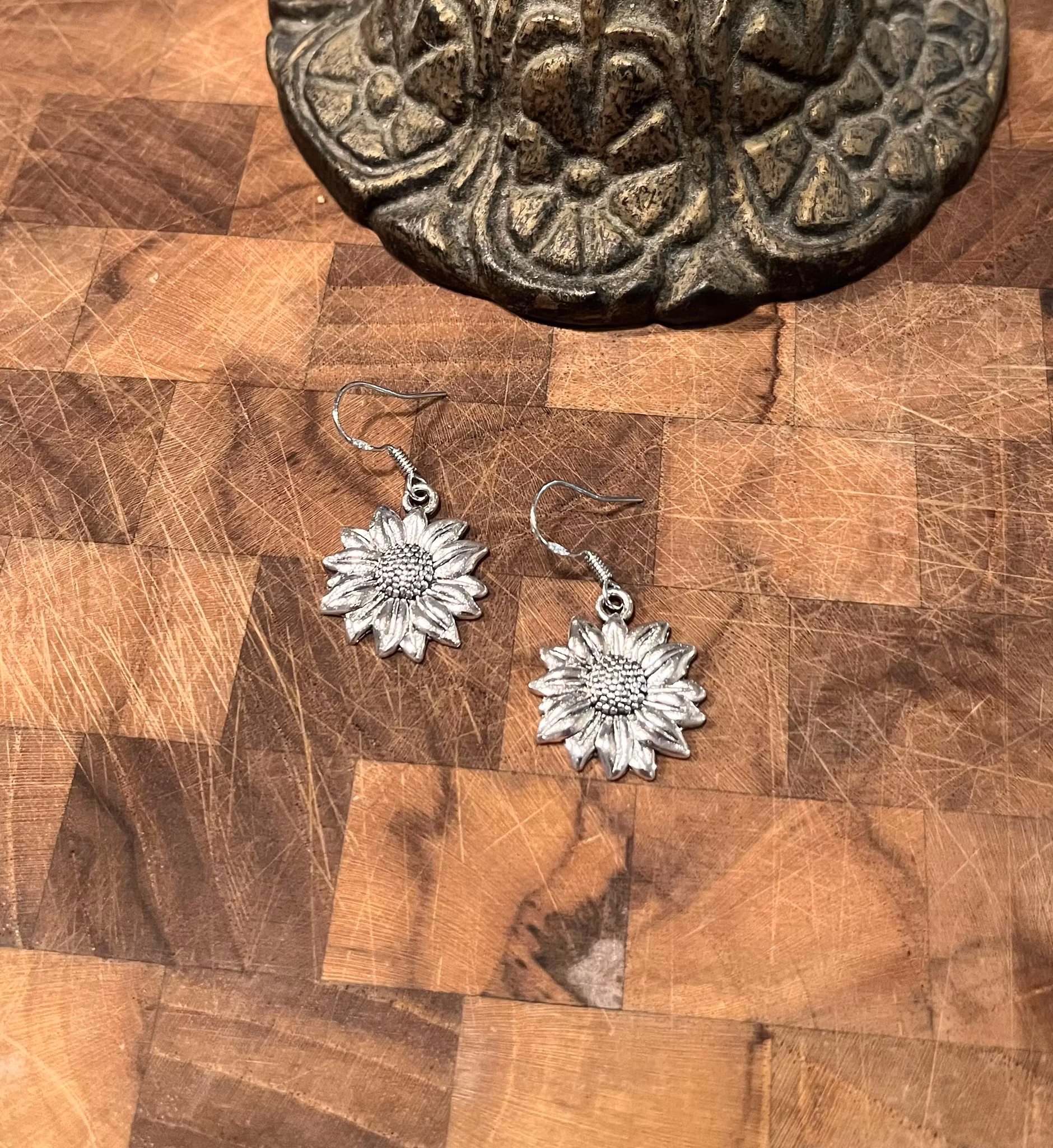 Sunflower - 3 cm 25,- Øreringe med solsikke i sølvfarve og kroge af Sterling silver / sølv. På lager Tilføj til kurv Lagersaldo: 1 Del Information Anmeldelser Øreringe med solsikke i sølvfarve og kroge af Sterling silver / sølv.