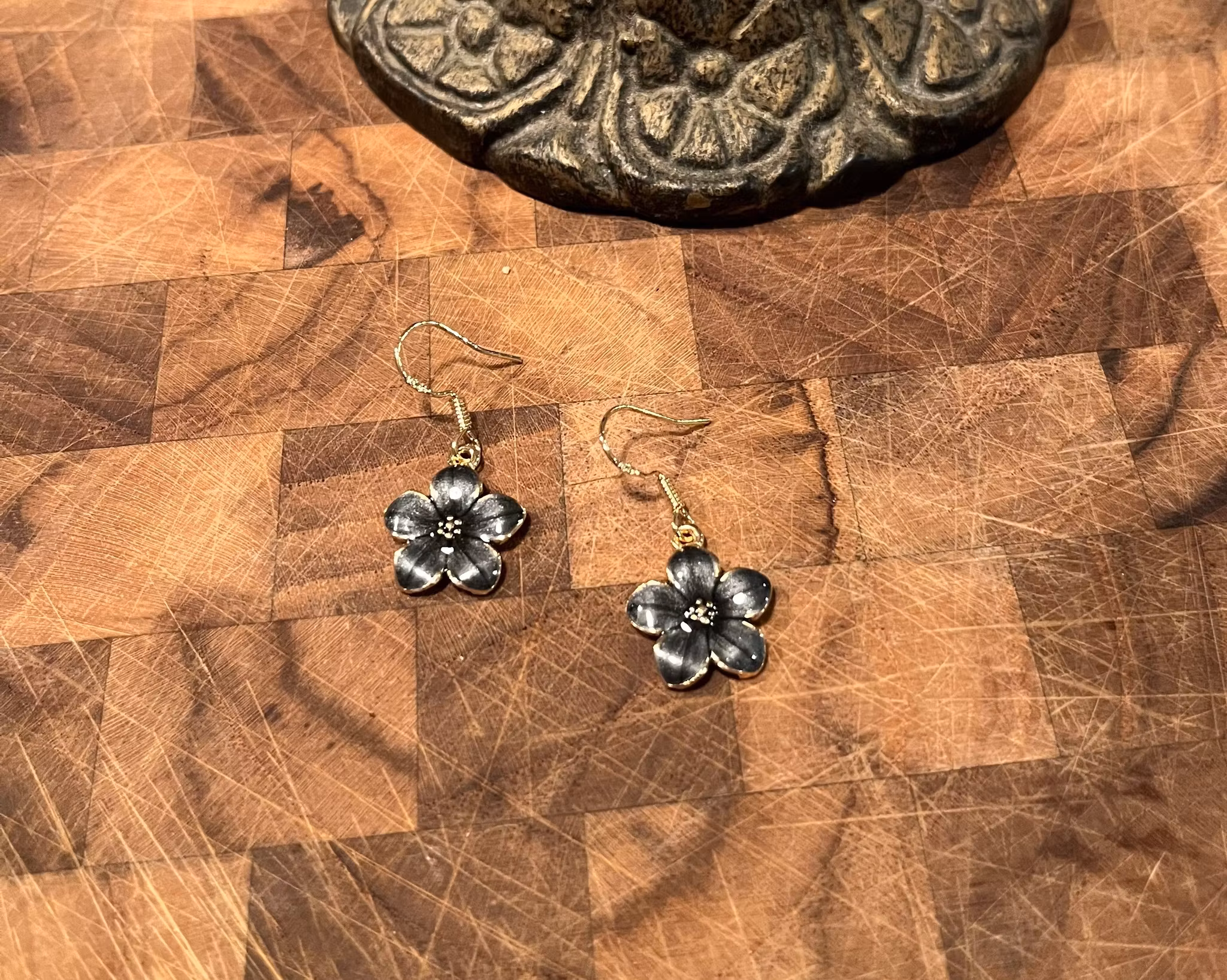 Cherryflower - 3 cm 25,- Øreringe med sorte blomster med krog af forgyldt Sterling silver / sølv. På lager Tilføj til kurv Lagersaldo: 1 Del Information Anmeldelser Øreringe med sorte blomster med krog af forgyldt Sterling silver / sølv.