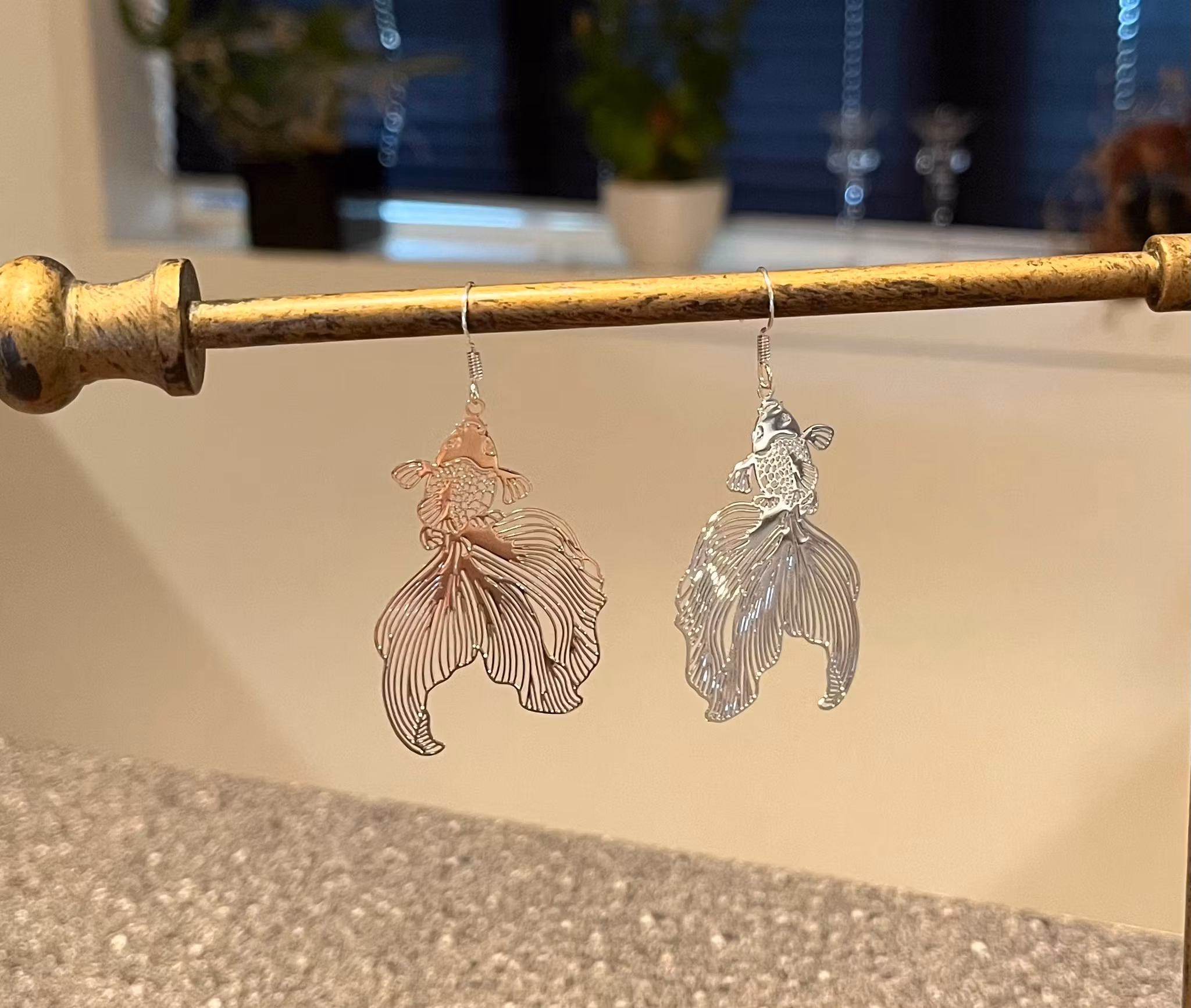 Guldfisk - 6 cm 25,- Guldfisk i sølvfarve ned ørekroge i forgyldt silver / sølv. På lager Tilføj til kurv Lagersaldo: 1 Del Information Anmeldelser Guldfisk i sølvfarve ned ørekroge i forgyldt silver / sølv.