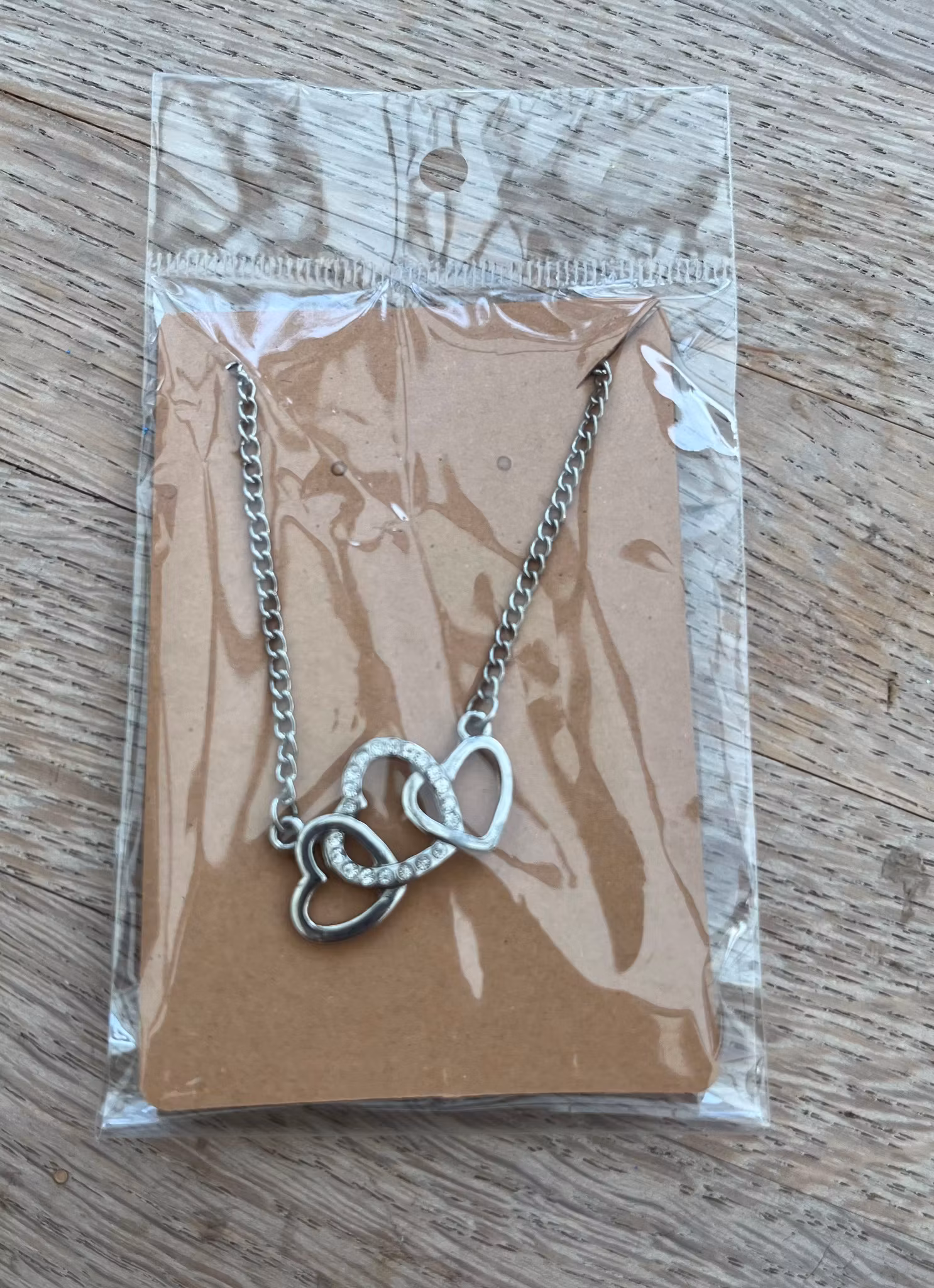 HjerteHalskæde 49,- Halskæde med 3 hjerter. På lager Tilføj til kurv Lagersaldo: 1 Del Information Anmeldelser Halskæde med 3 hjerter.