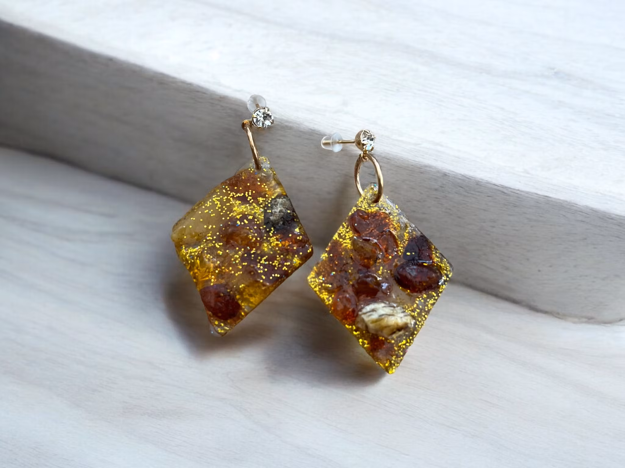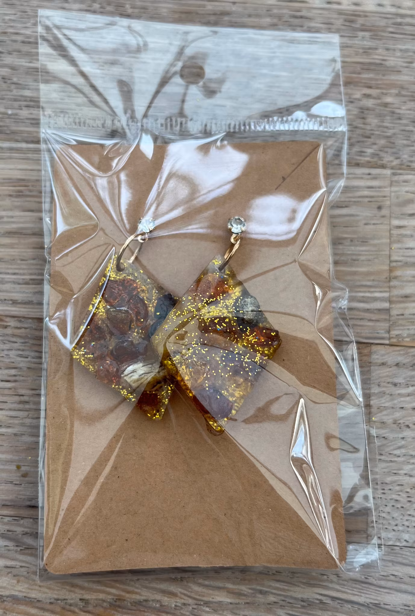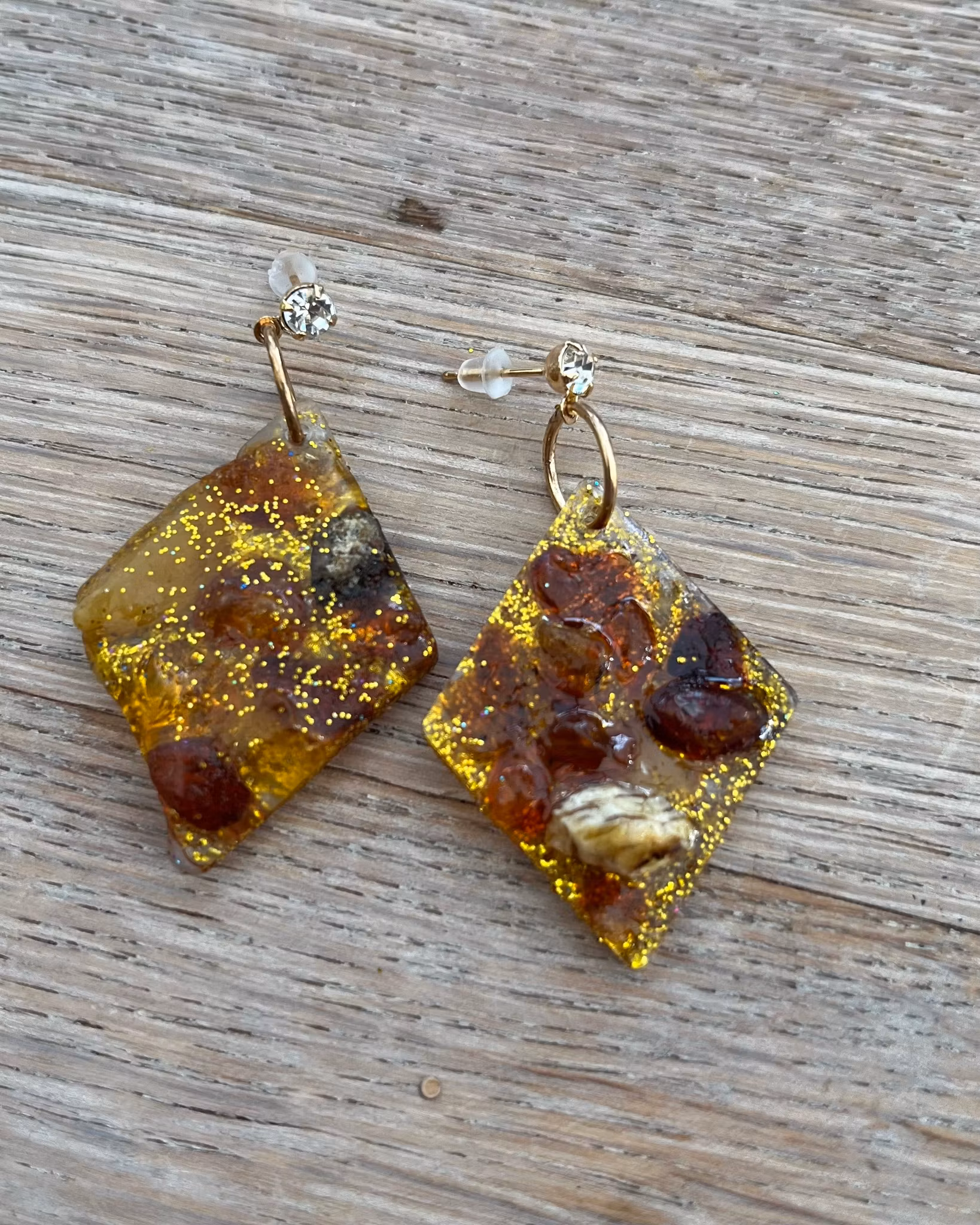 Ravfirkant 49,- Øreringe lavet med epoxyharpiks med ravstykker fundet i Storebælt. På lager Tilføj til kurv Lagersaldo: 1 Del Information Anmeldelser Øreringe lavet med epoxyharpiks med ravstykker fundet i Storebælt.