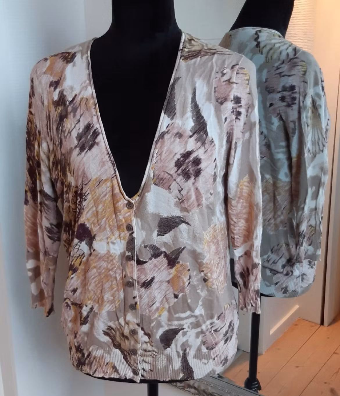 Taifun - str. M 25,- Bluse / trøje / cardigan med knapper På lager Tilføj til kurv Lagersaldo: 1 Del Information Anmeldelser Bluse / trøje / cardigan med knapper