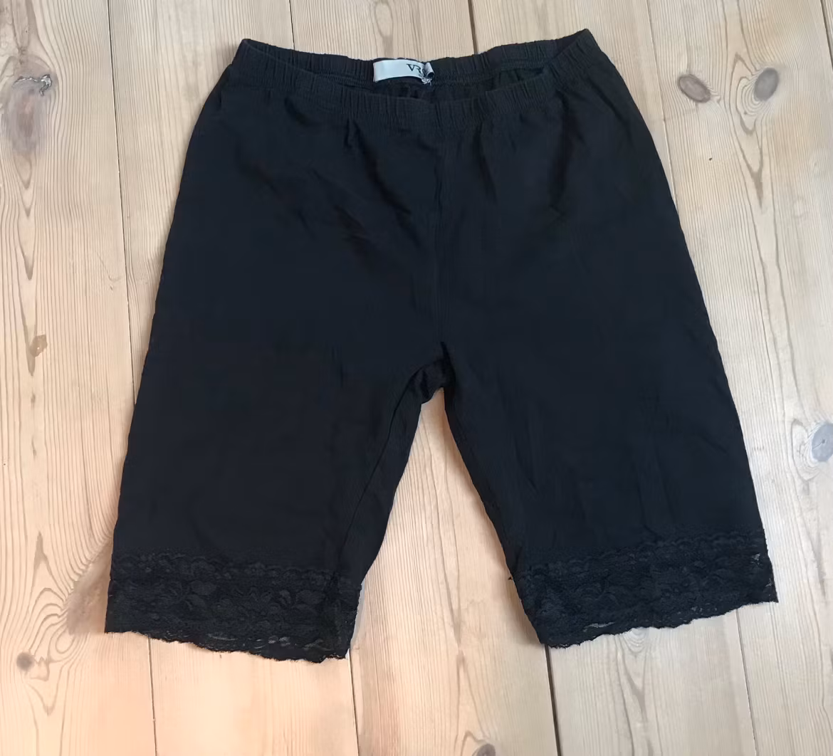 VRS - str. M 10,- Sorte cykel shorts med blonder. Kan bruges nedenunder kjoler. På lager Tilføj til kurv Lagersaldo: 1 Del Information Anmeldelser Sorte cykel shorts med blonder. Kan bruges nedenunder kjoler.