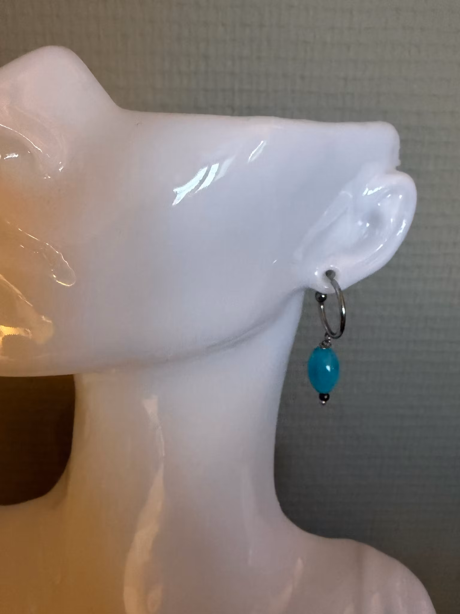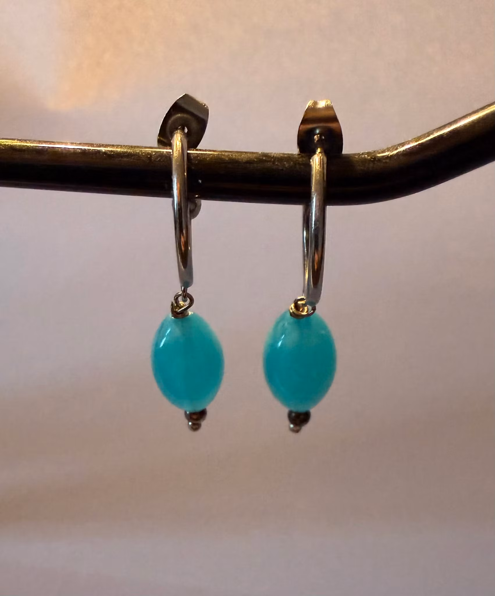 - Sten: Naturlig amazonit-krystal med en glat, oval finish.
