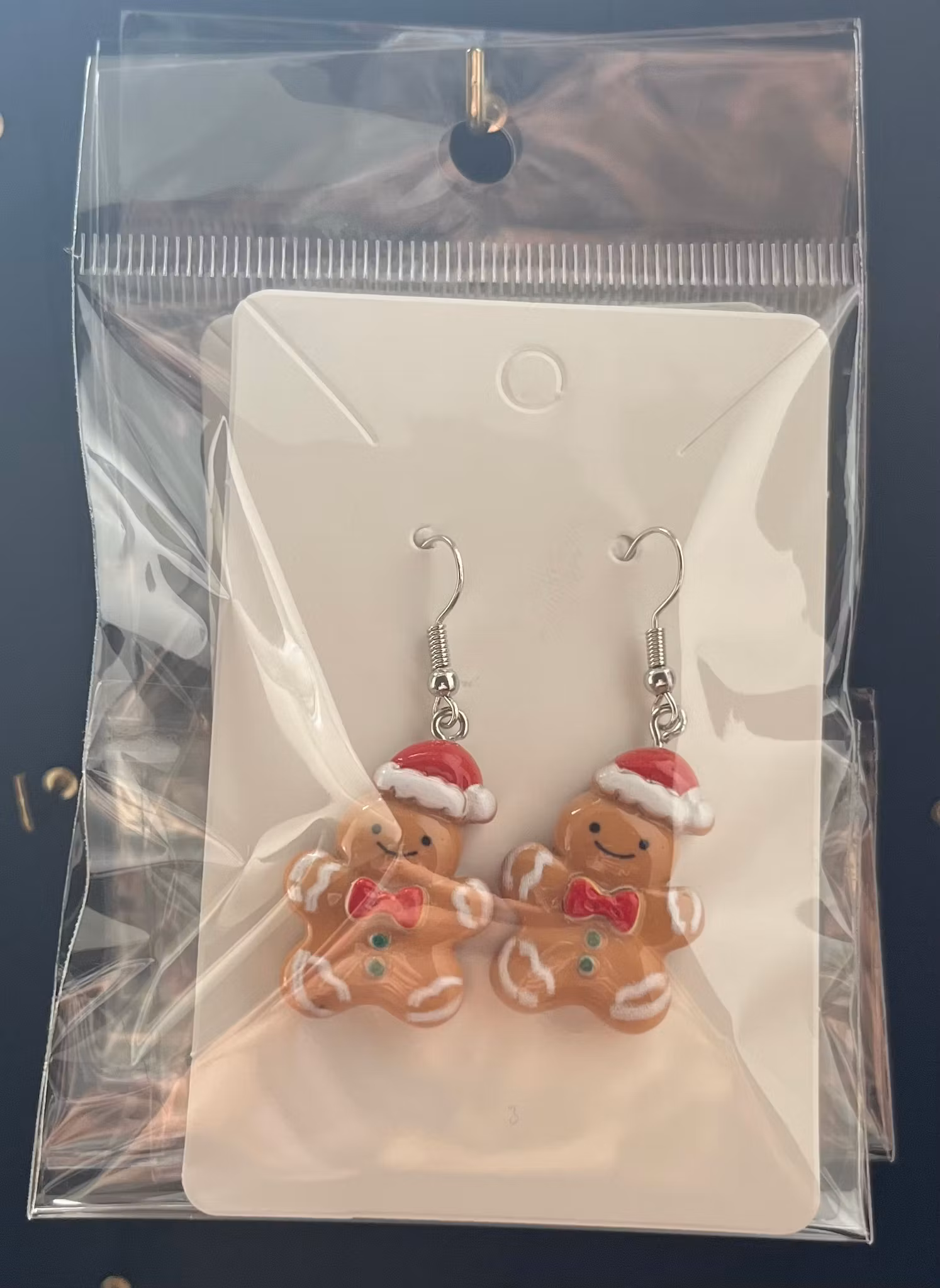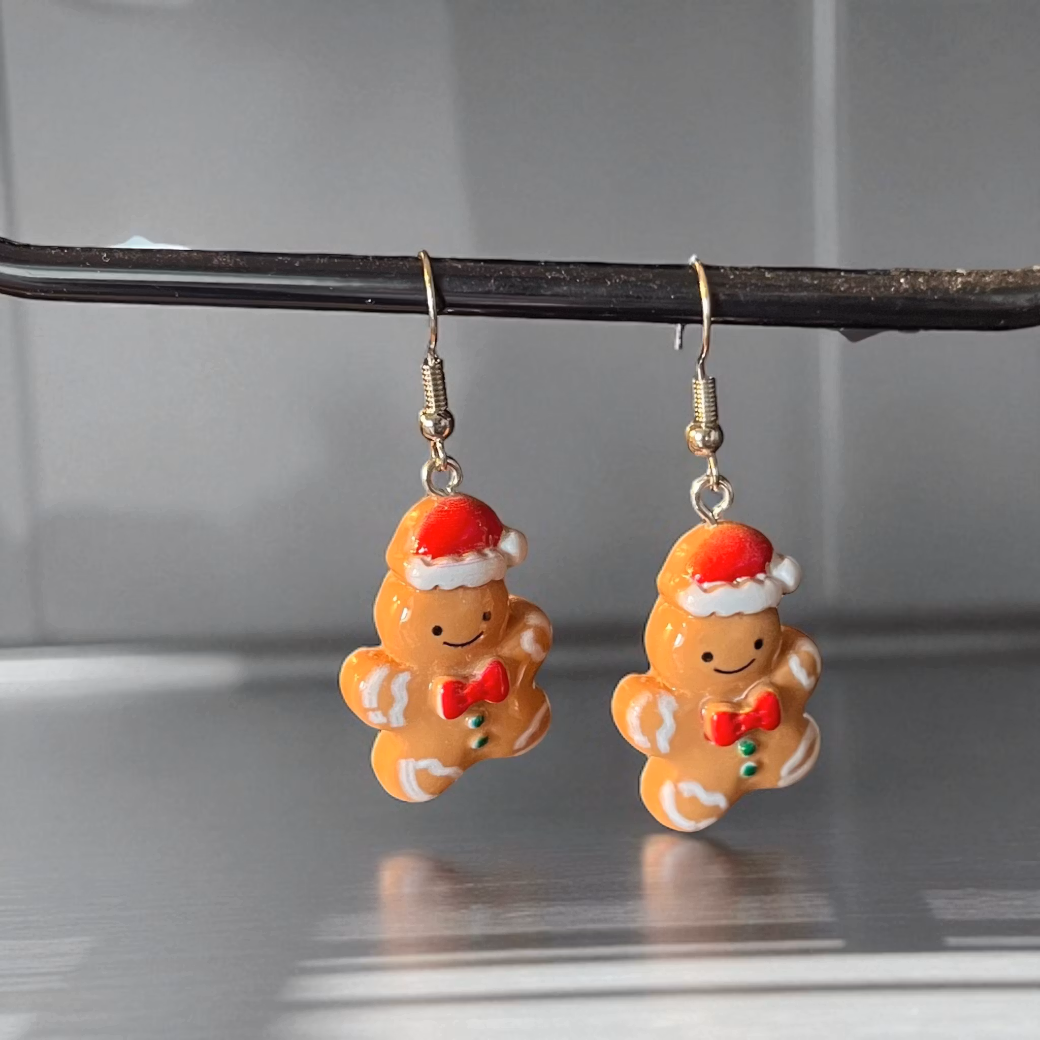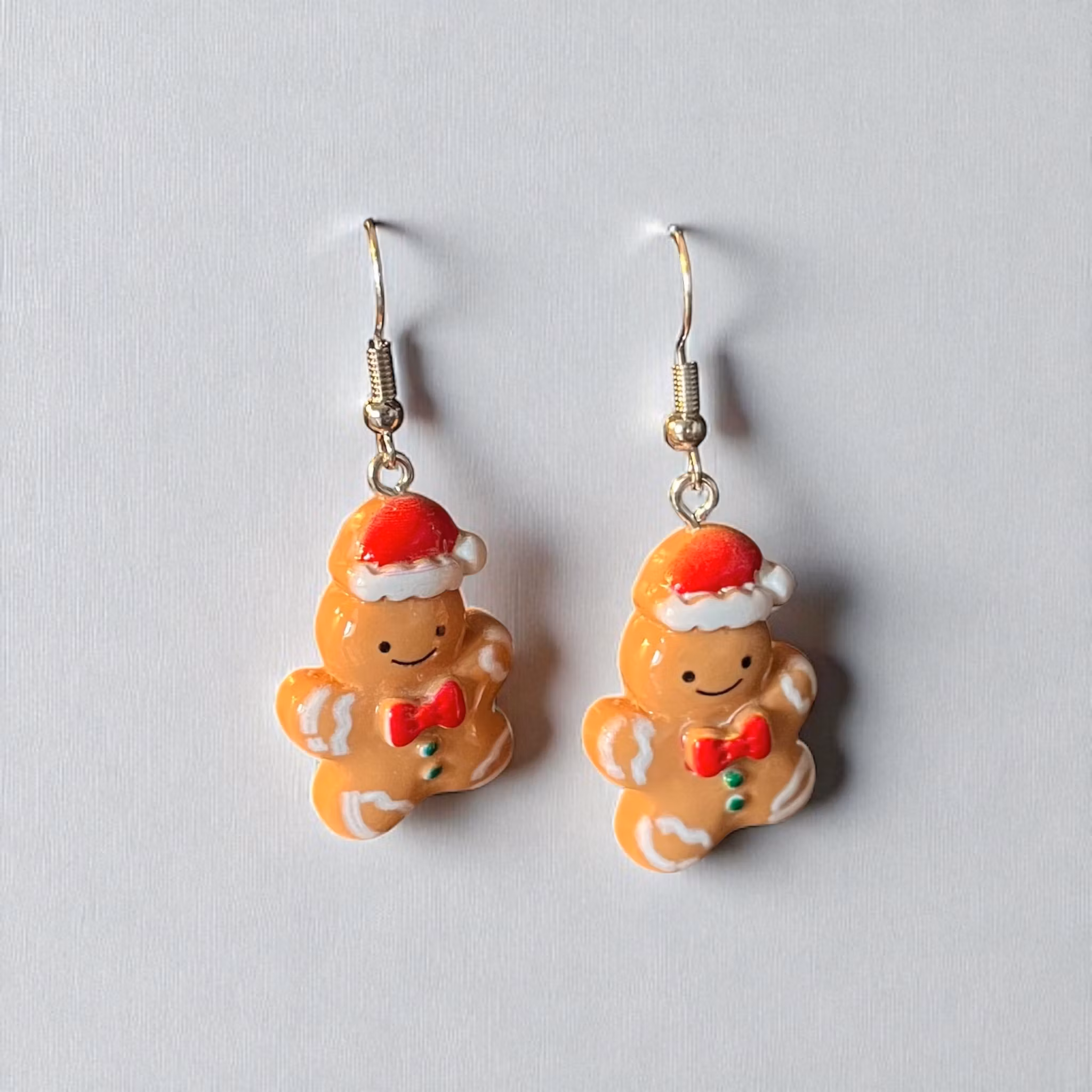 Disse charmerende øreringe er perfekte til at sprede juleglæde og tilføje et festligt touch til dit outfit. Hvert par består af to detaljerede peberkage mænd, komplet med smilende ansigter, røde sløjfer og nuttede julehatte.