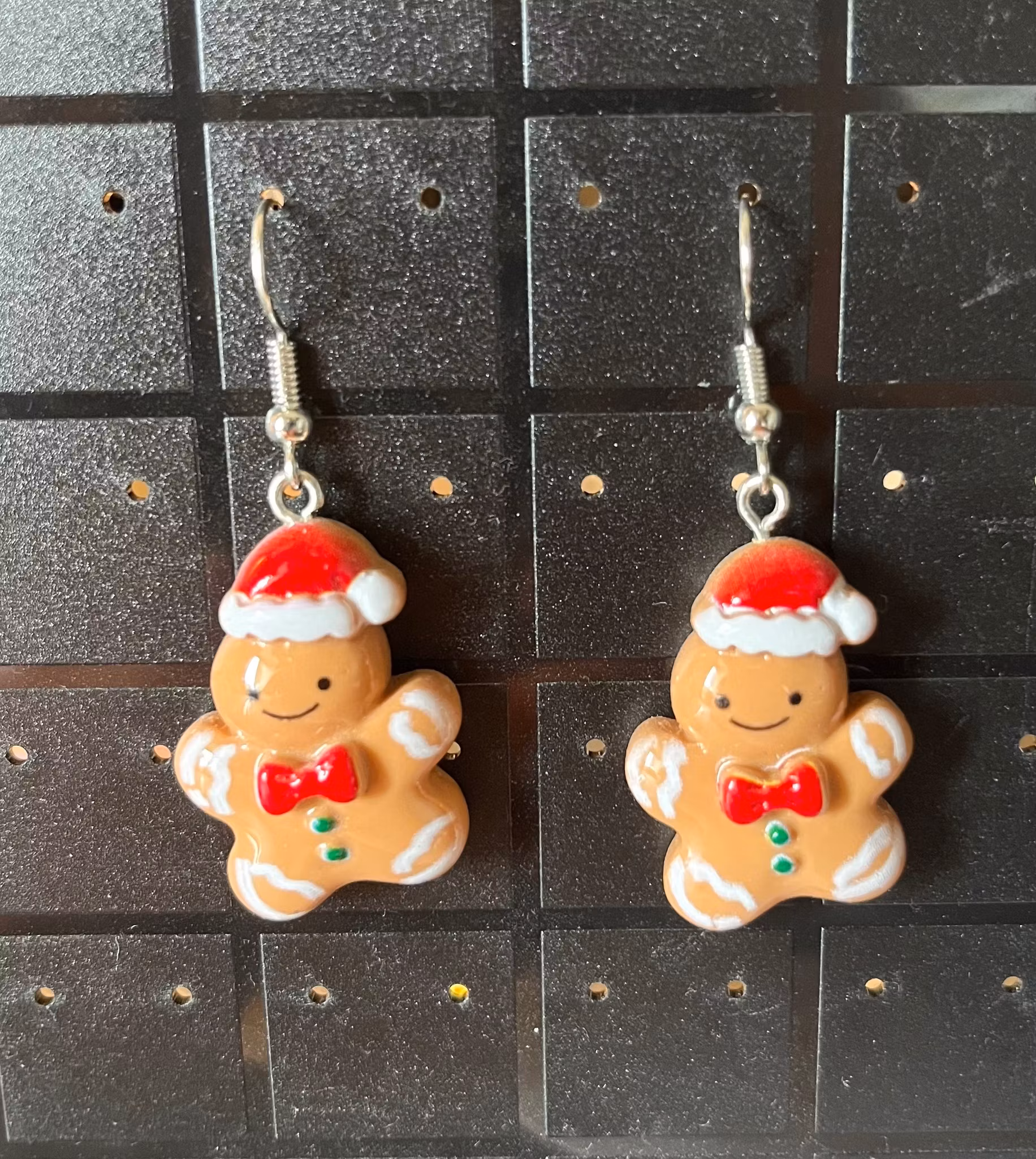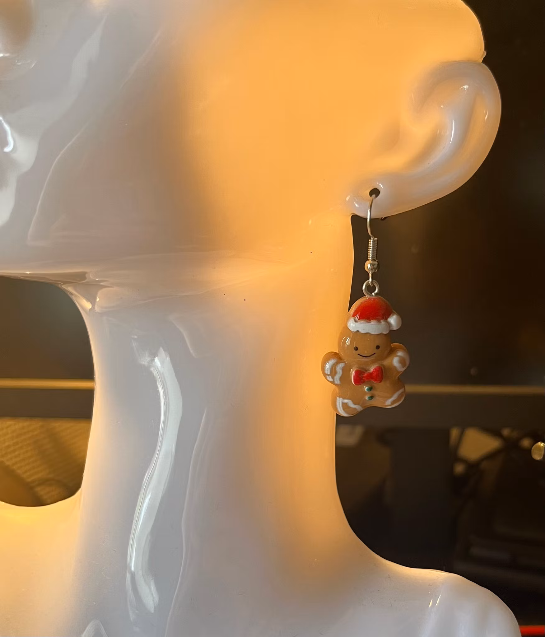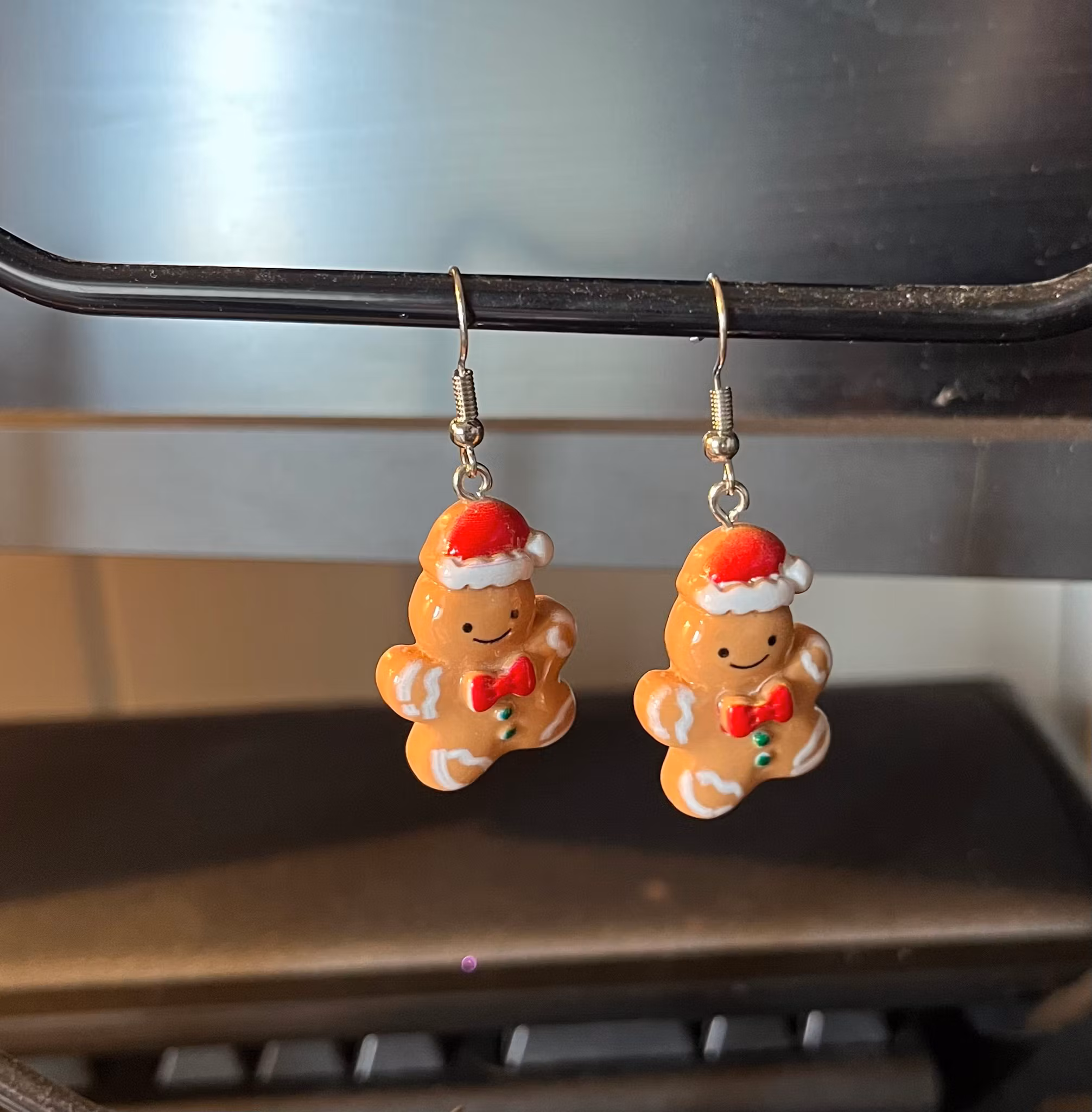 Disse charmerende øreringe er perfekte til at sprede juleglæde og tilføje et festligt touch til dit outfit. Hvert par består af to detaljerede peberkage mænd, komplet med smilende ansigter, røde sløjfer og nuttede julehatte.