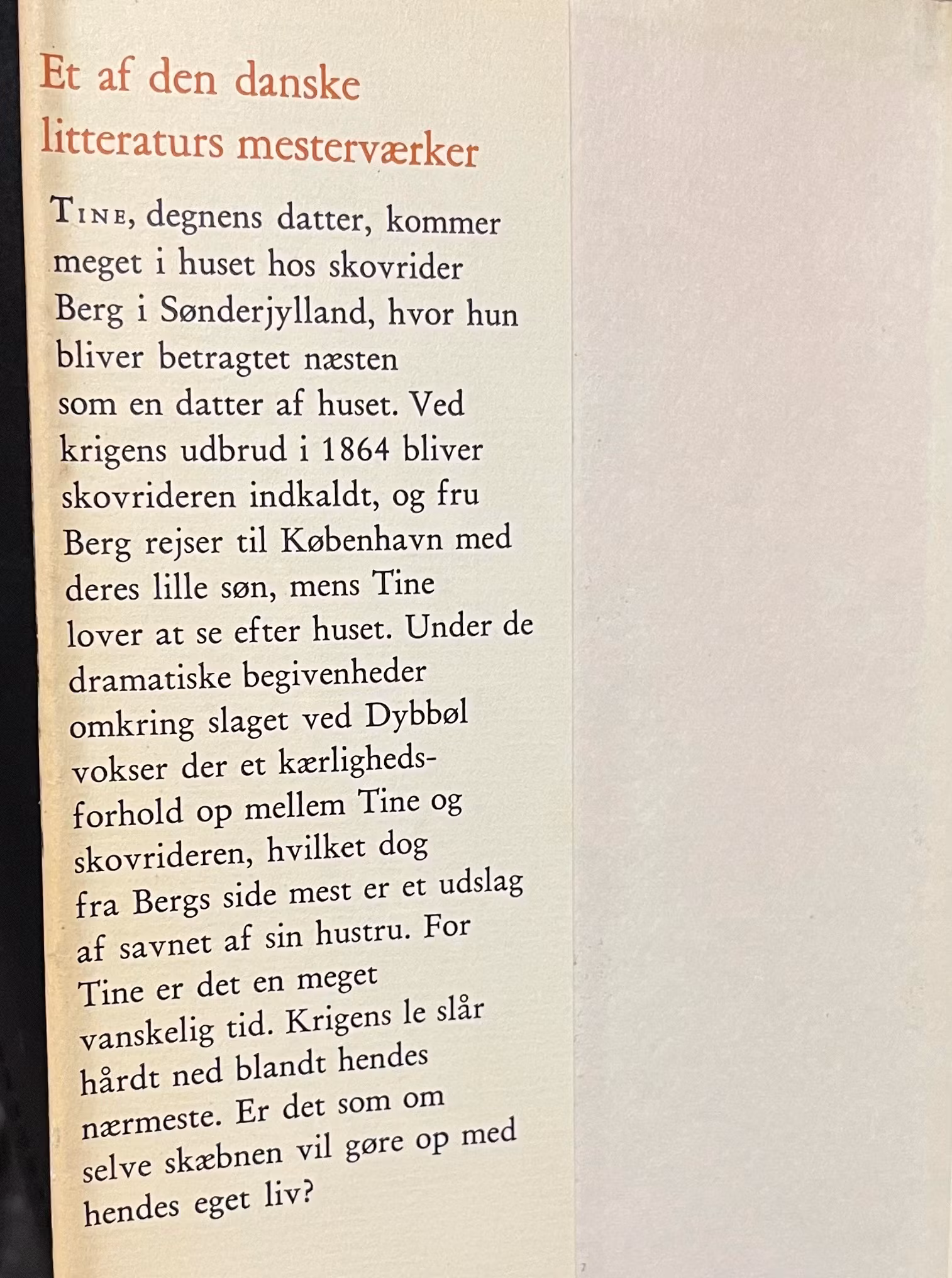 Tine – 255 sider – Hardback – Sprog: Dansk - illustreret af Svend Otto S. Er en dansk roman fra 1889 af Herman Bang. Den foregår under krigen i 1864, og bogens hovedtemaer er krig, katastrofe, sygdom, seksuelt begær og selvmord.