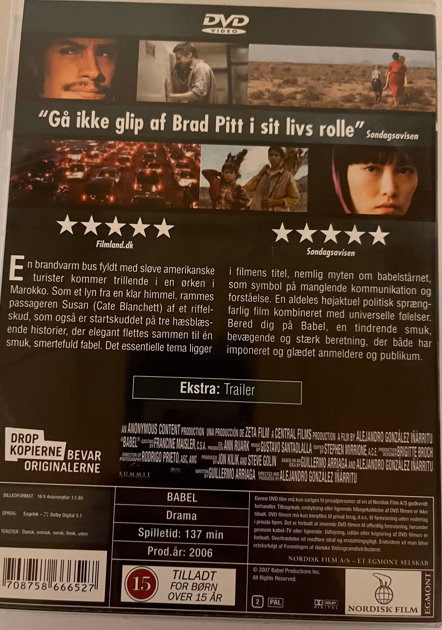 DVD - Babel 25,- Medvirkende: Brad PittCate BlanchettGael Garsia BernalKor YakushoTilladt fra 15 år På lager Tilføj til kurv Lagersaldo: 1 Del Information Anmeldelser Medvirkende: Brad PittCate BlanchettGael Garsia BernalKor YakushoTilladt fra 15 år