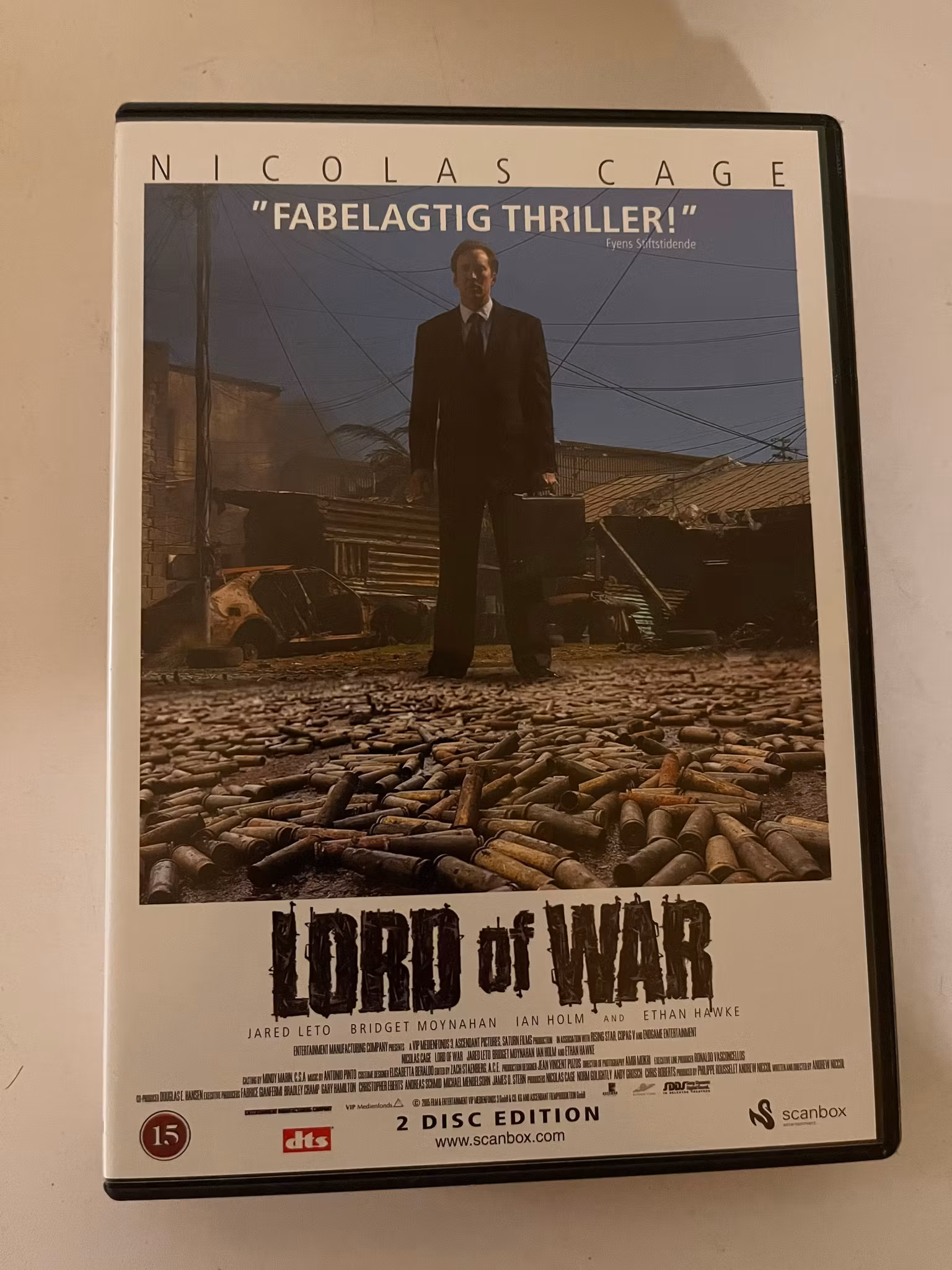 DVD - Lord of War 25,- Medvirkende:Nicolas CageTilladt fra 15 år På lager Tilføj til kurv Lagersaldo: 1 Del Information Anmeldelser Medvirkende:Nicolas CageTilladt fra 15 år