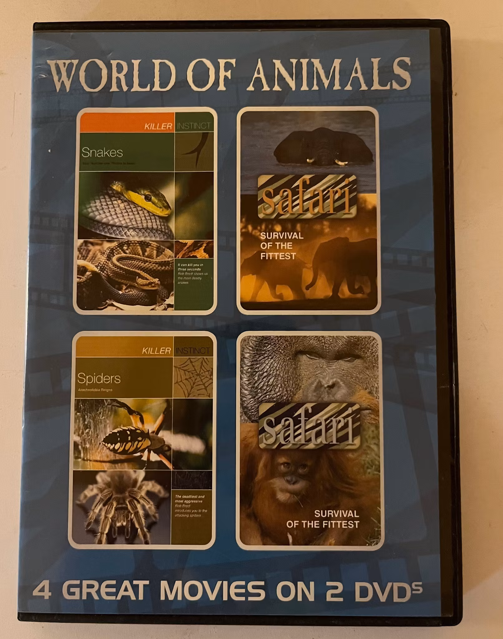 DVD - World of Animals 25,- - Snake- Spiders- Safari- Safari På lager Tilføj til kurv Lagersaldo: 1 Del Information Anmeldelser - Snake- Spiders- Safari- Safari