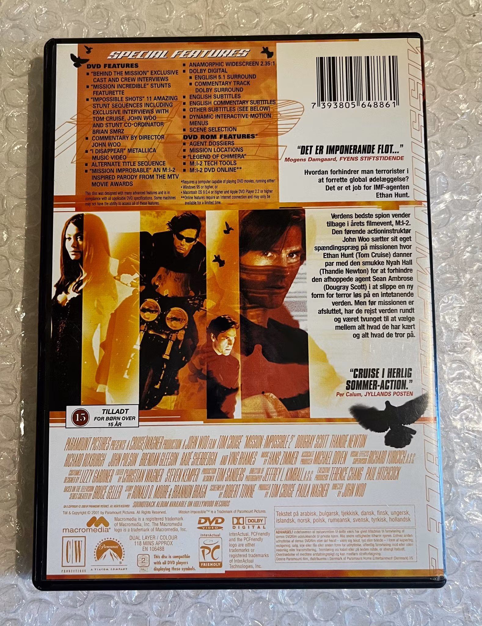 M:I-2 - mission impossible 2 25,- Dvd film med blandt andet Tom Cruise På lager Tilføj til kurv Lagersaldo: 1 Del Information Anmeldelser Dvd film med blandt andet Tom Cruise