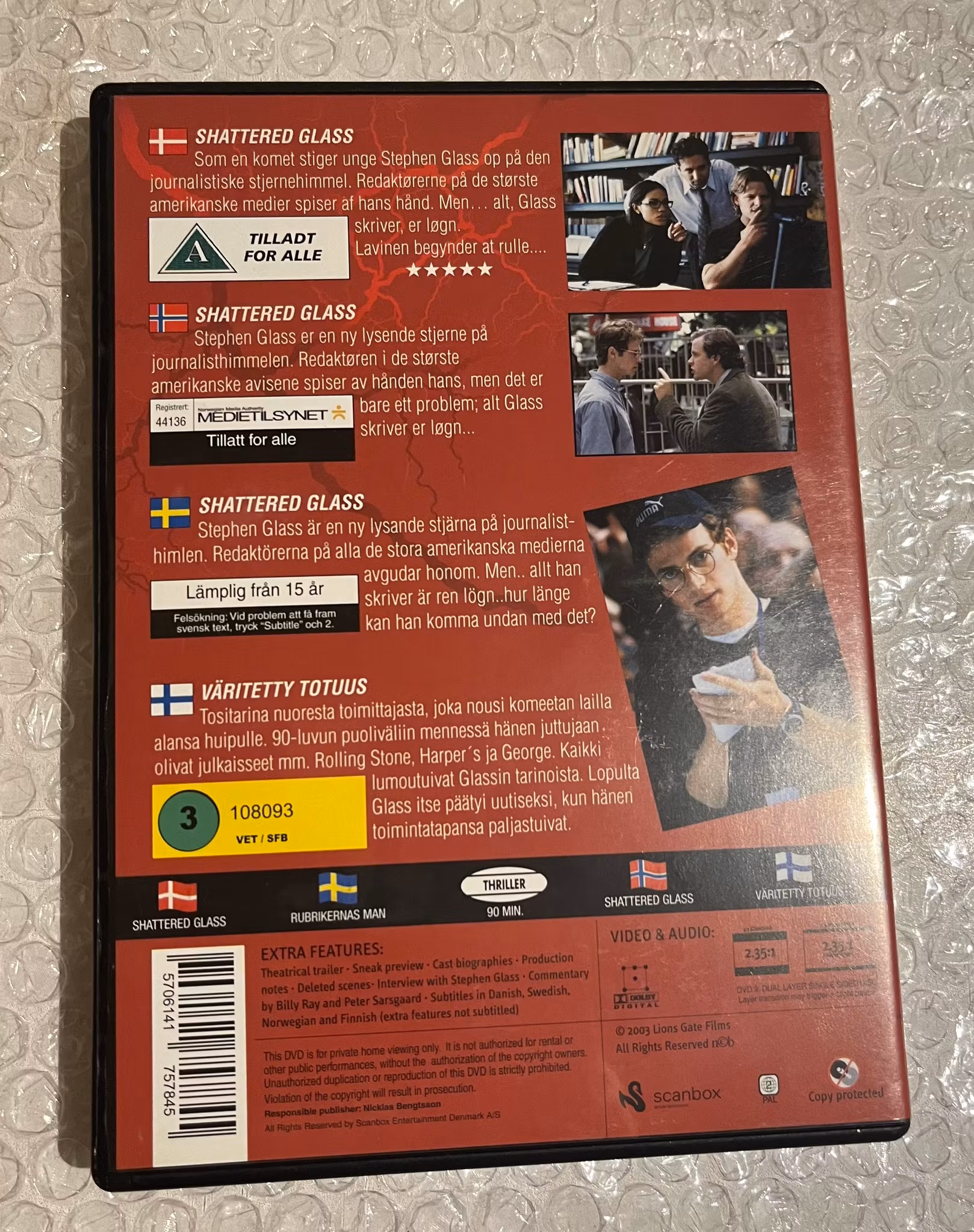 Shattered Glass 25,- Dvd film. På lager Tilføj til kurv Lagersaldo: 1 Del Information Anmeldelser Dvd film.